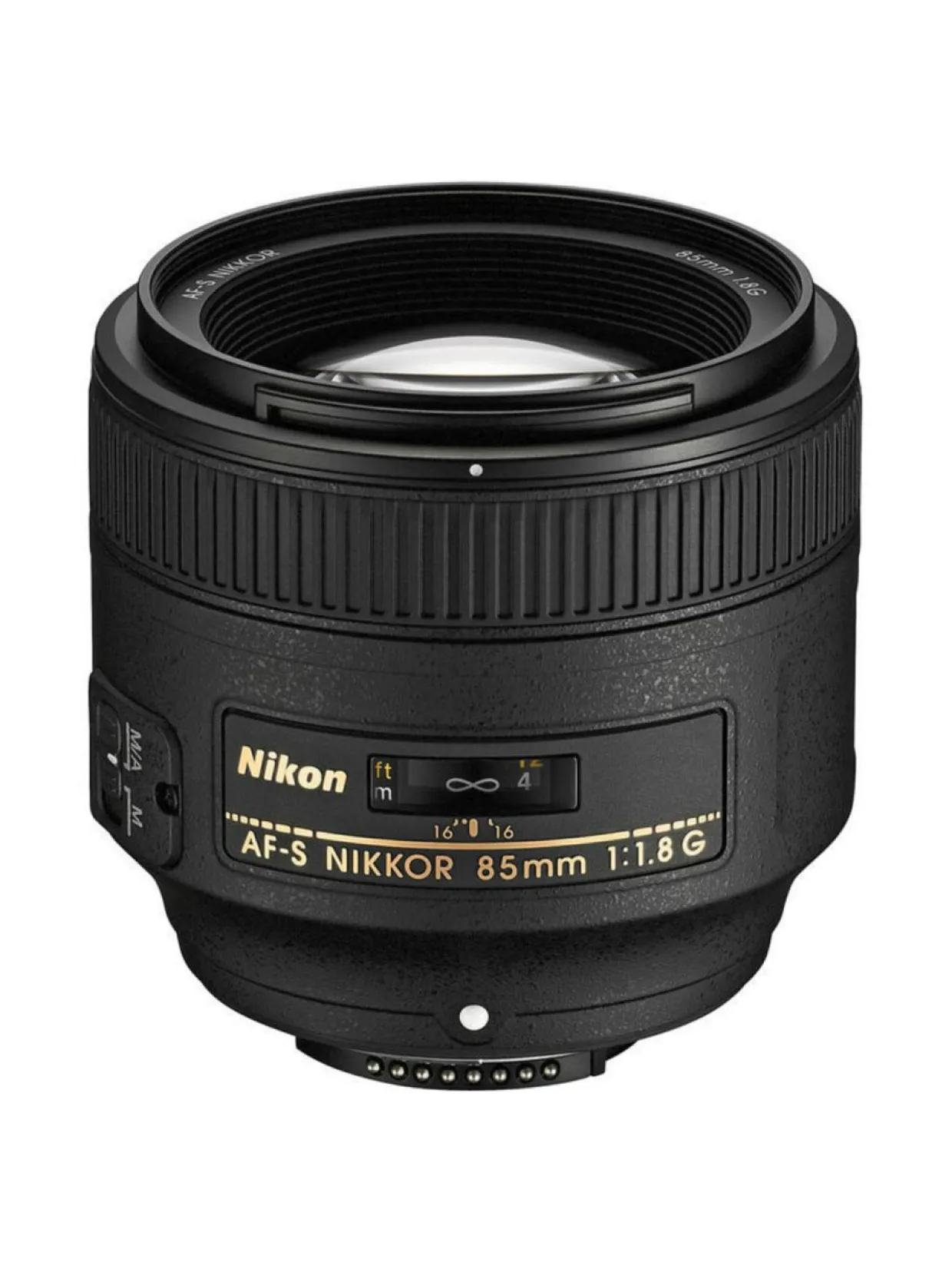 FX-koon keskipitkä teleobjektiivi, jossa 85 mm:n polttoväli (127,5 mm käytettäessä Nikonin DX-koon järjestelmäkamerassa).