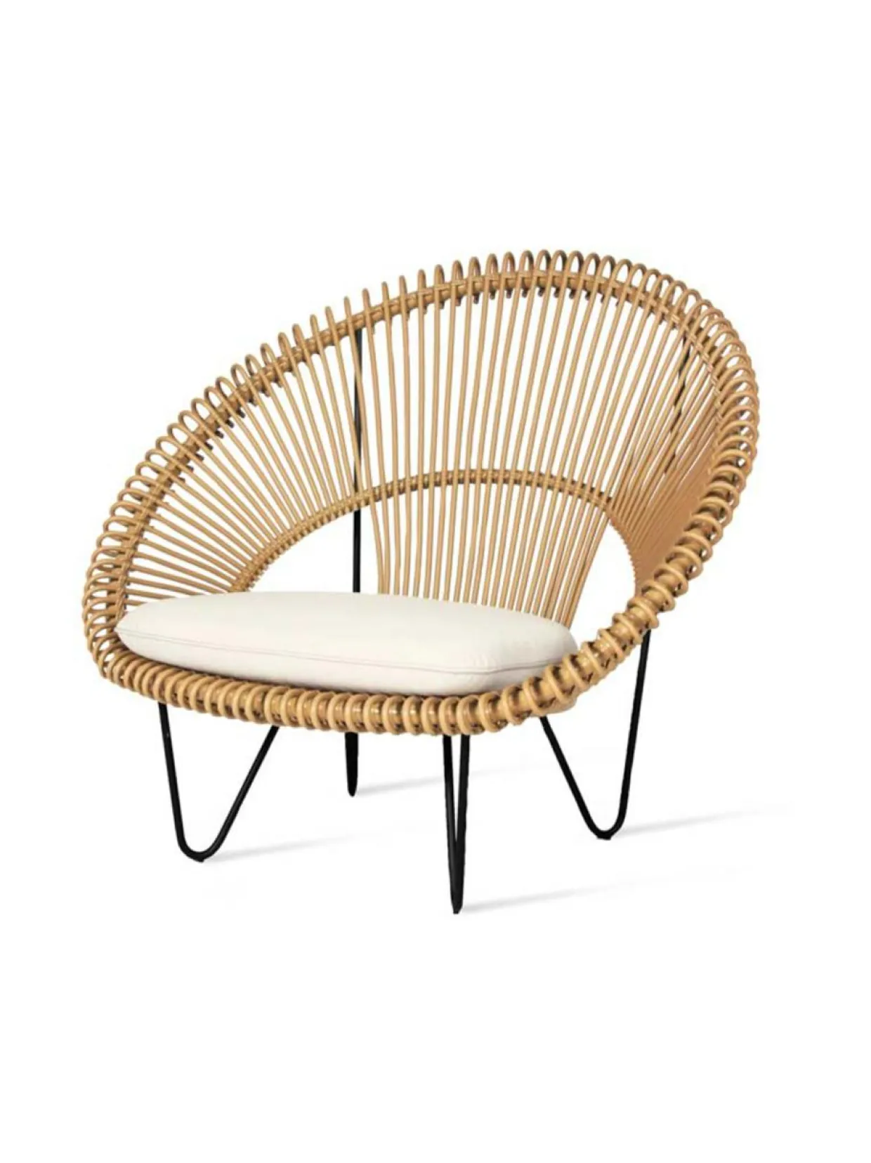 Ulkokäyttöön tehty upea muotoiltu nojatuoli Roy Cocoon kutsuu sinut käpertymään ja oleskelemaan terassille ja puutarhaan.