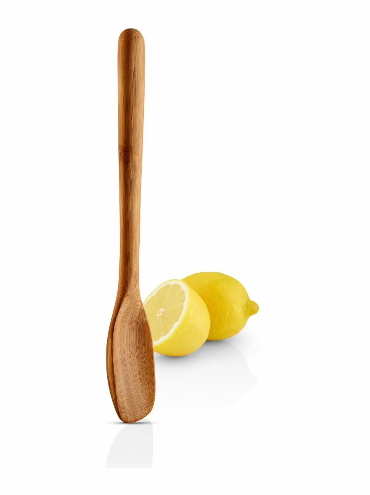 Eva Solon Nordic Kitchen -tarjoilulusikka sopii täydellisesti ruoan sekoittamiseen ja tarjoiluun. Lusikka on valmistettu luonnollisesta bambusta, joka on käynyt läpi lämpökäsittelyn, joka antaa materiaalille lämpimän, rikkaan sävyn. Lämpökäsittely vahvistaa myös materiaalin kosteudenkestävyyttä. Lusikassa on pyöristetyt reunat, joten se ei naarmuta keittoastioiden pintaa. Pituus 27 cm.