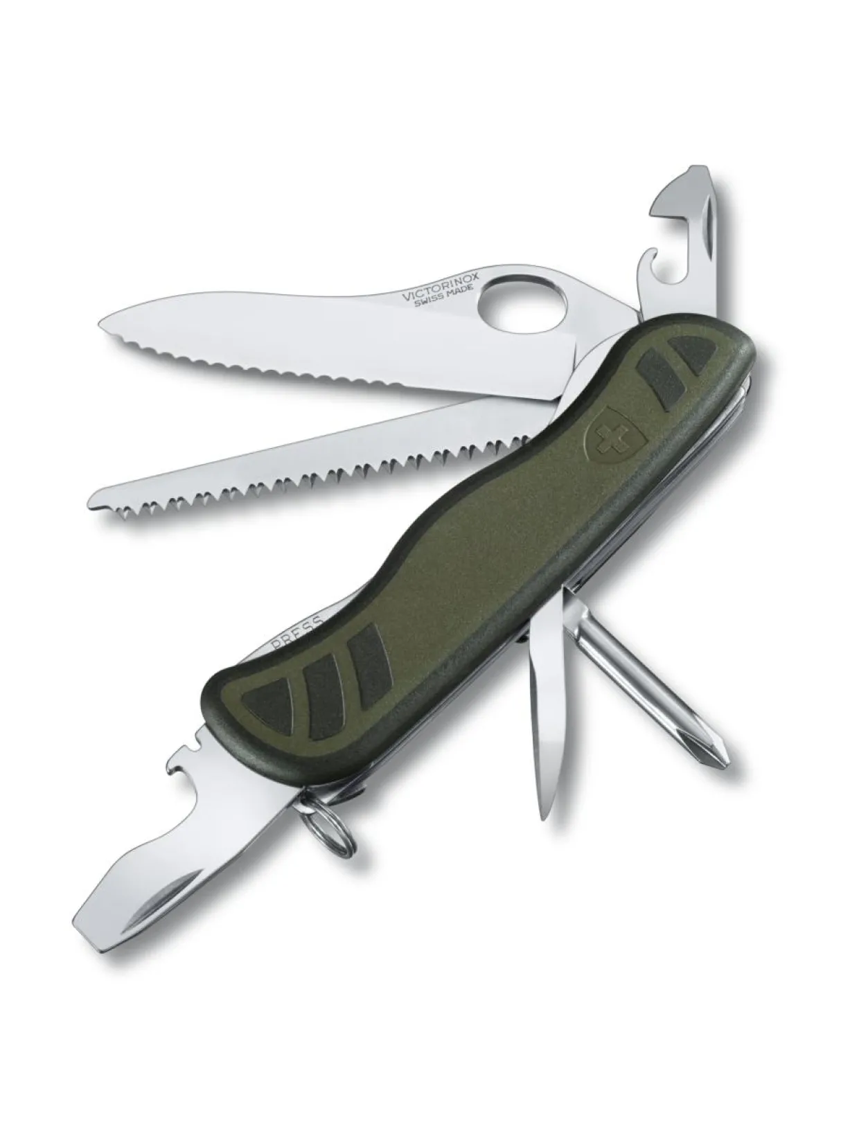 Sveitsin armeijan uusi virallinen taittoveitsi. Suurempi, kätevämpi ja monipuolisempi kuin edeltäjänsä. Erikoisuutena jokaisen käteen sopiva kaksoiskomponenttikahva. Linkkuveitsen pituus 111m ja yhteensopiva nahkakotelon SwissTool tai 111mm kanssa.