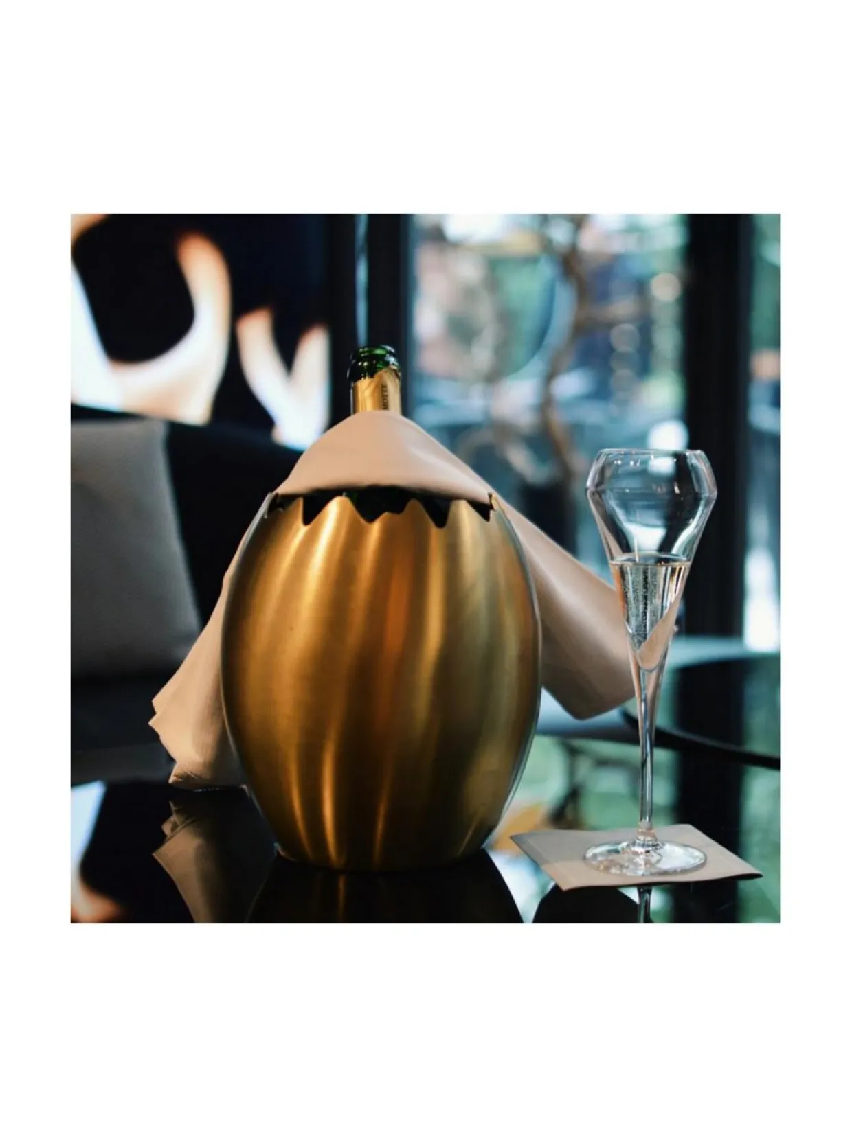 Ovo Oro Ice (matta kulta) viininjäähdyttimen materiaali on konepesunkestävää korkealaatuista suomalaista ruostumatonta terästä ja se sopii myös koriste-esineeksi ja/tai maljakoksi. Halkaisija 19 cm, korkeus 22 cm ja tilavuus 4,5 lt.