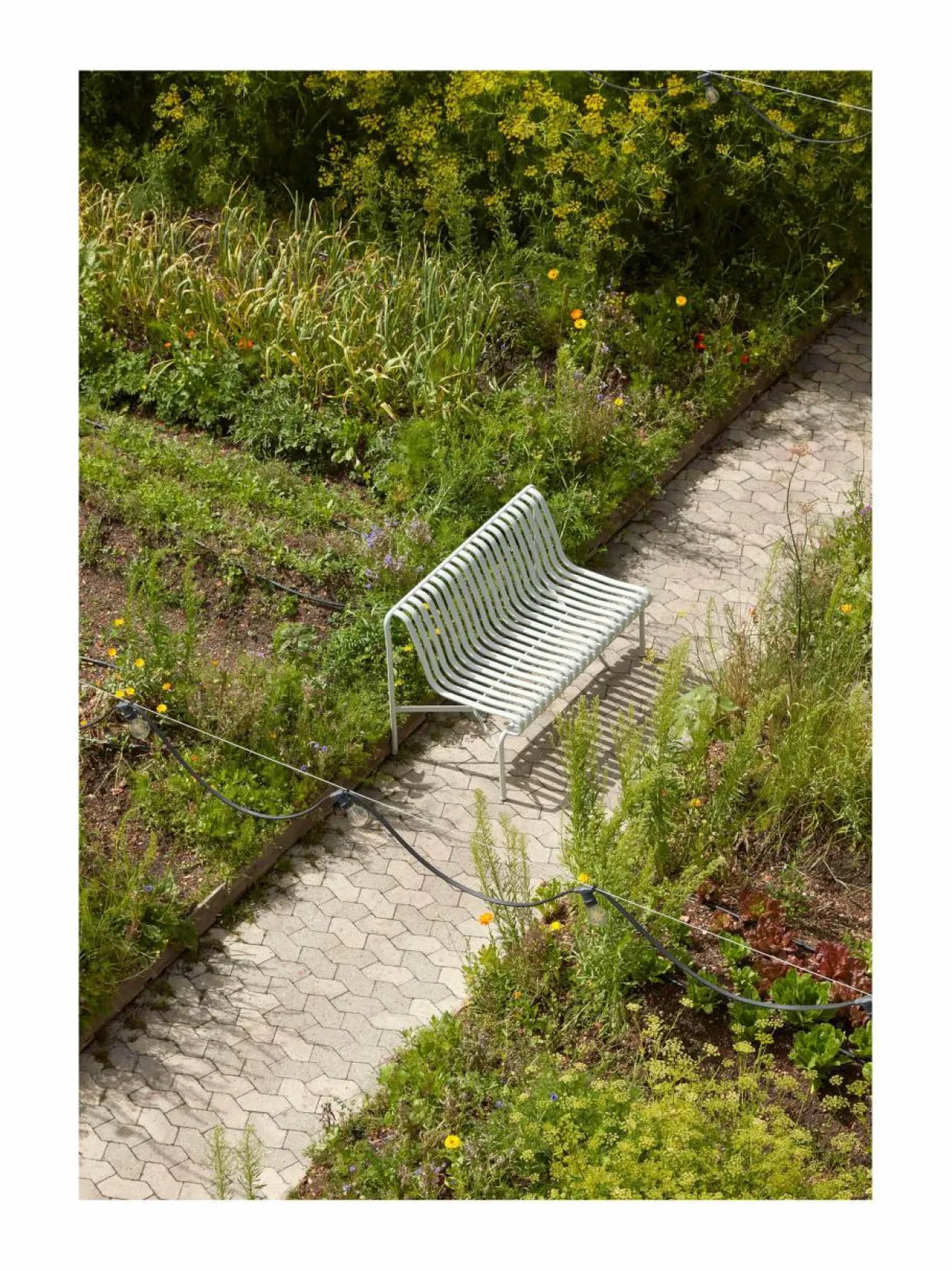 Hayn selkänojallinen Palissade-penkki kuuluu Ronan ja Erwan Bouroullecin käsialaa olevaan kalustemallistoon, joka on suunniteltu erityisesti ulkokäyttöön. Kestävät ja ajattoman kauniit teräskalusteet sopivat niin julkisiin kuin yksityisiin tiloihin, ja ne näyttävät luontevilta puutarhojen, terassien ja parvekkeiden lisäksi myös kahviloissa ja ravintoloissa. Harkitun muotokielensä ansiosta kalusteet ovat tukevia olematta kömpelöitä ja elegantteja olematta heppoisia. Penkin lisäksi mallistoon kuuluu erilaisia pöytiä, tuoleja ja sohvia sekä niihin sopivia pehmusteita.