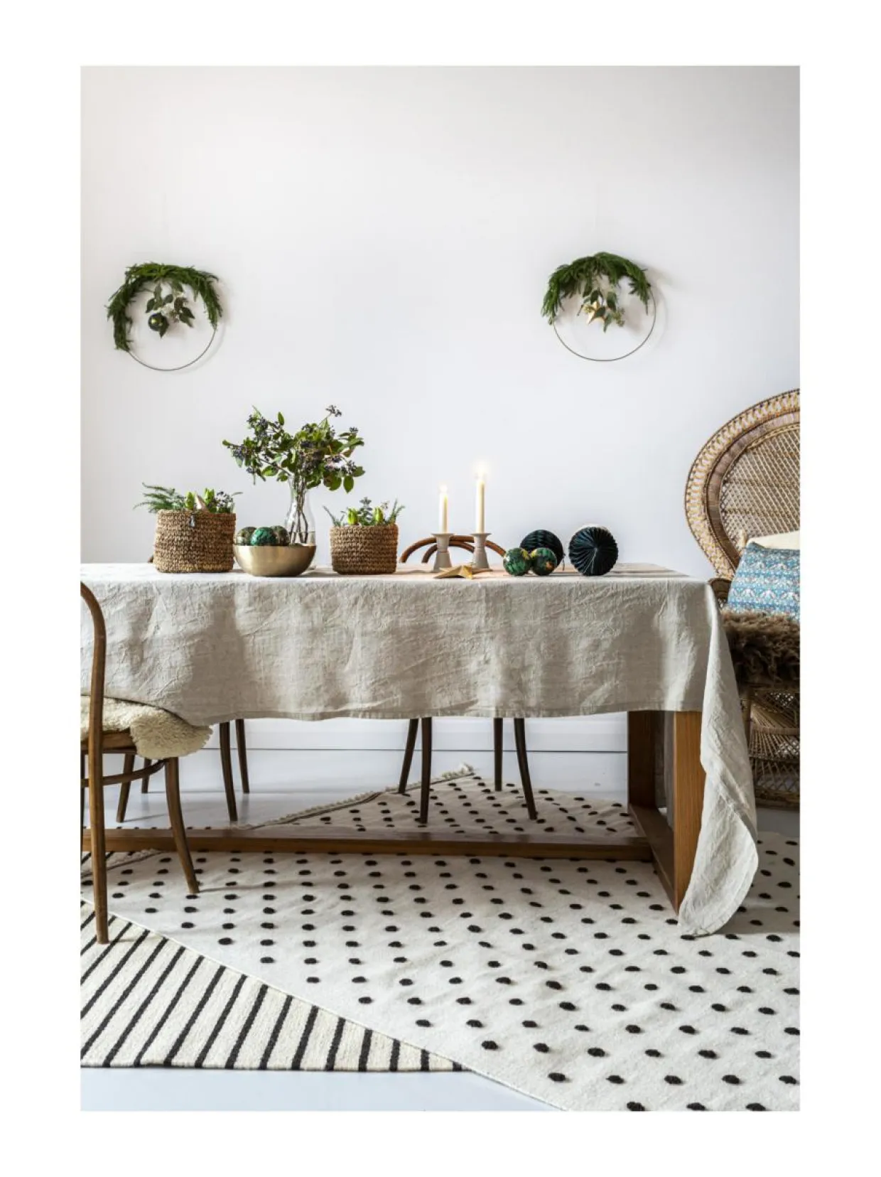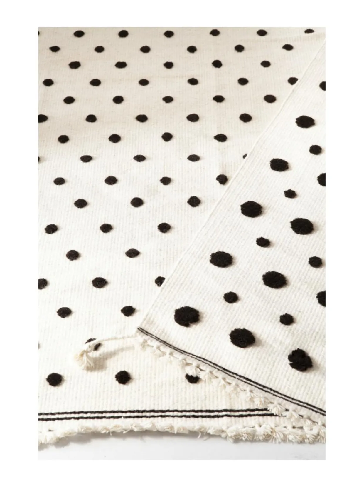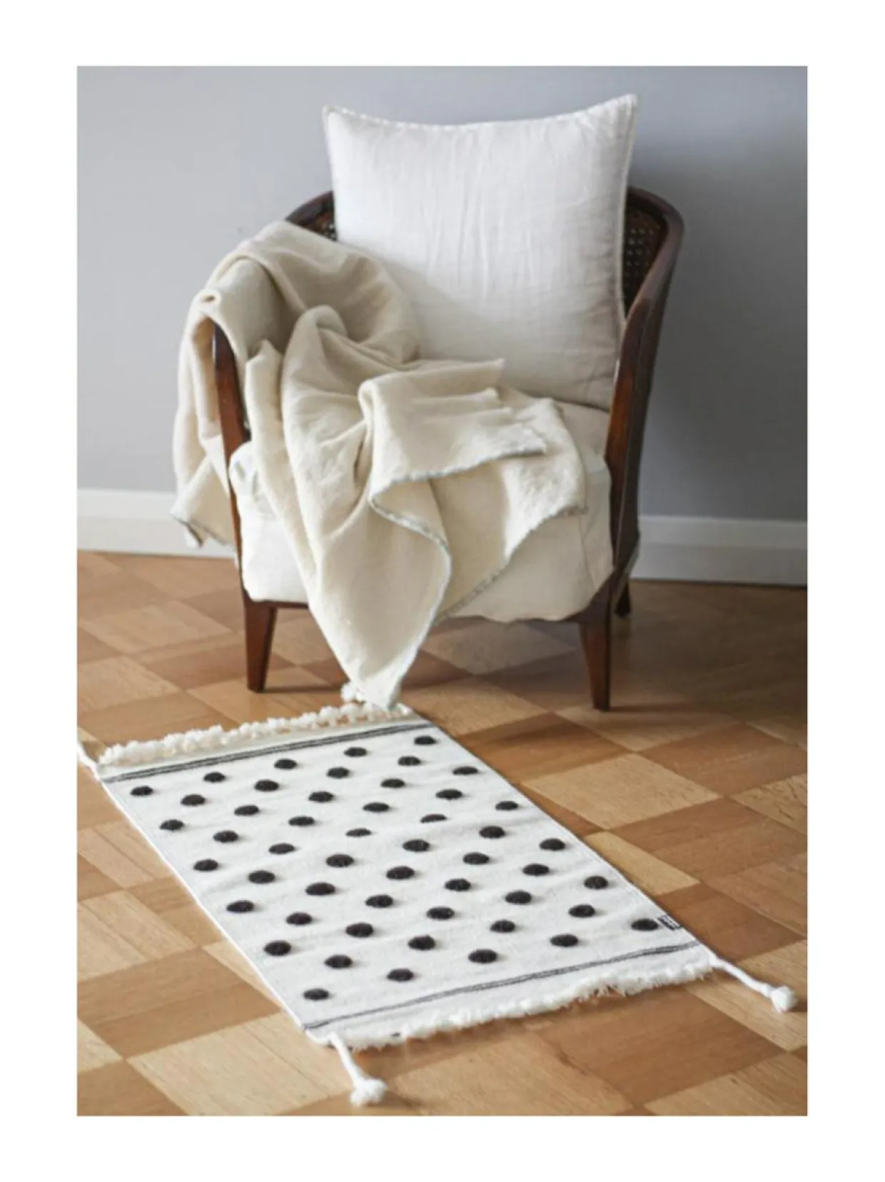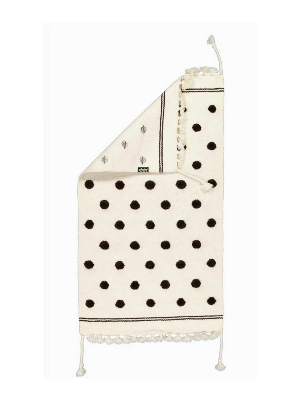 Käsinkudottu pilkullinen villamatto, jonka kolmiulotteiset pilkut on tehty ryijytekniikalla. Mustat pilkut ovat värjäämätöntä mustan lampaan villaa. Jokaisesta matosta löytyy kutojansa nimikirjain, joka kertoo tuotteen alkuperän. Villamatot kudotaan käsin Pohjois-Gujaratin maaseutukylien kodeissa, joissa kudonnan perinteet ovat usein säilyneet sukupolvilta toisille. Tuotantoa ja suunnittelua ohjaavat reilun kaupan periaatteet. Tuotteen kautta tuet käsityöläisten työllistymistä suoraan kotikylissään ja paikallista kestävää kehitystä. Matoissa käytetty paikallinen intialainen villa on kemikaalivapaata ja mattoa suojaava lanoliini (villan rasva) on vielä tallella – matot sopivat loistavasti myös haastavampiin paikkoihin kuten keittiöön ja eteiseen.