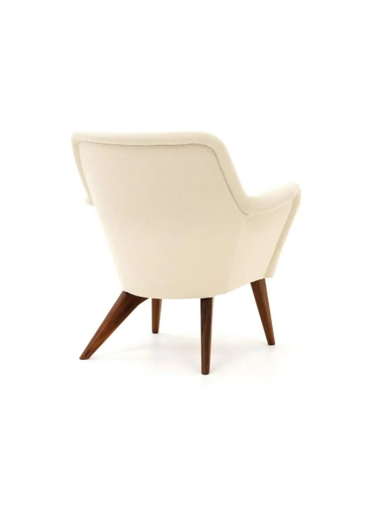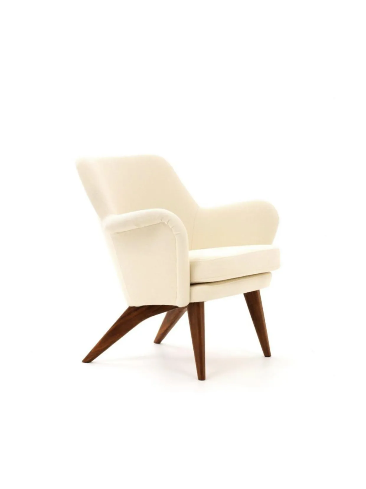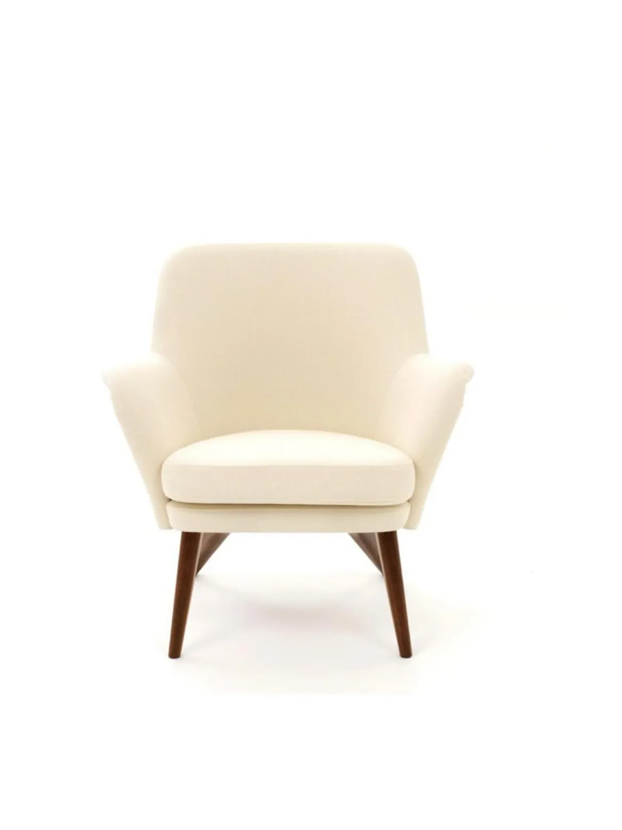Tämä Pedro nojatuolin jalat ovat pähkinäpuuta ja verhoilukangas ylellistä, sileää Vidar villakangasta.