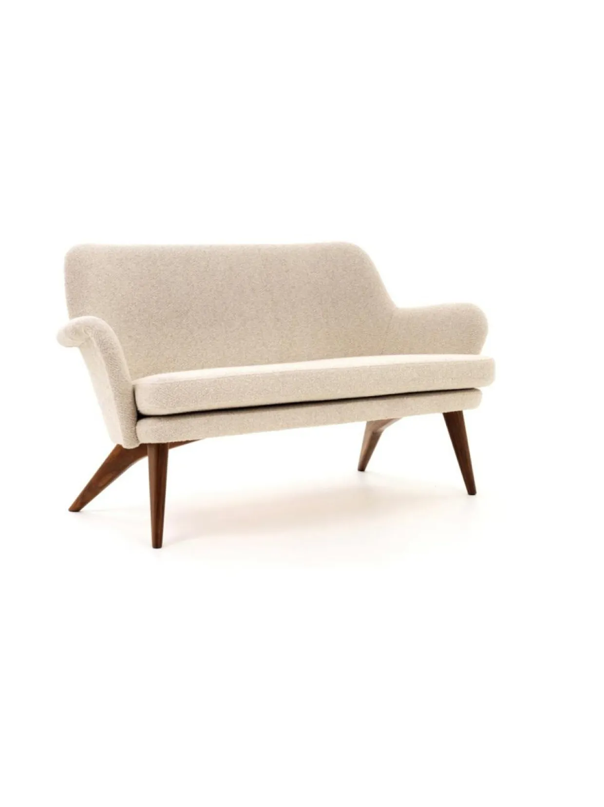Tässä Pedro sohvassa on pähkinäpuiset jalat ja ylellisen kuohkea Lamm villasekoitekangasverhoilu.