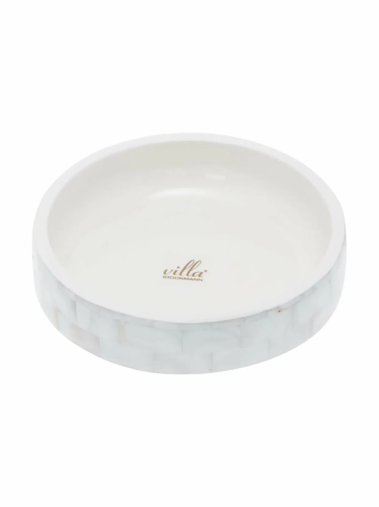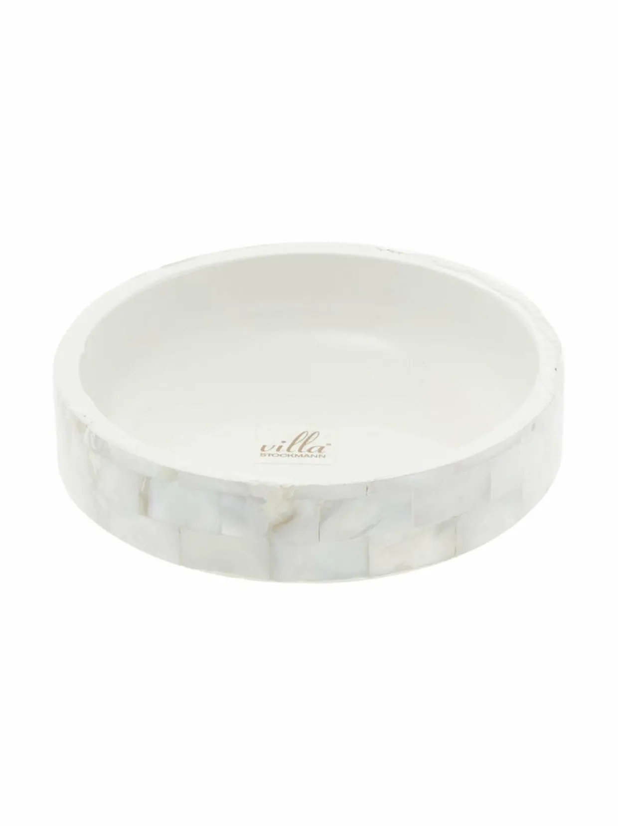 Elegantti saippuakuppi Villa Stockmannilta. Siinä on kaunis helmeä muistuttava pinta. Alusta sopii mainiosti myös korujen säilytykseen. Perla-sarjasta on saatavilla myös muita ihastuttavia kylpyhuonetarvikkeita.