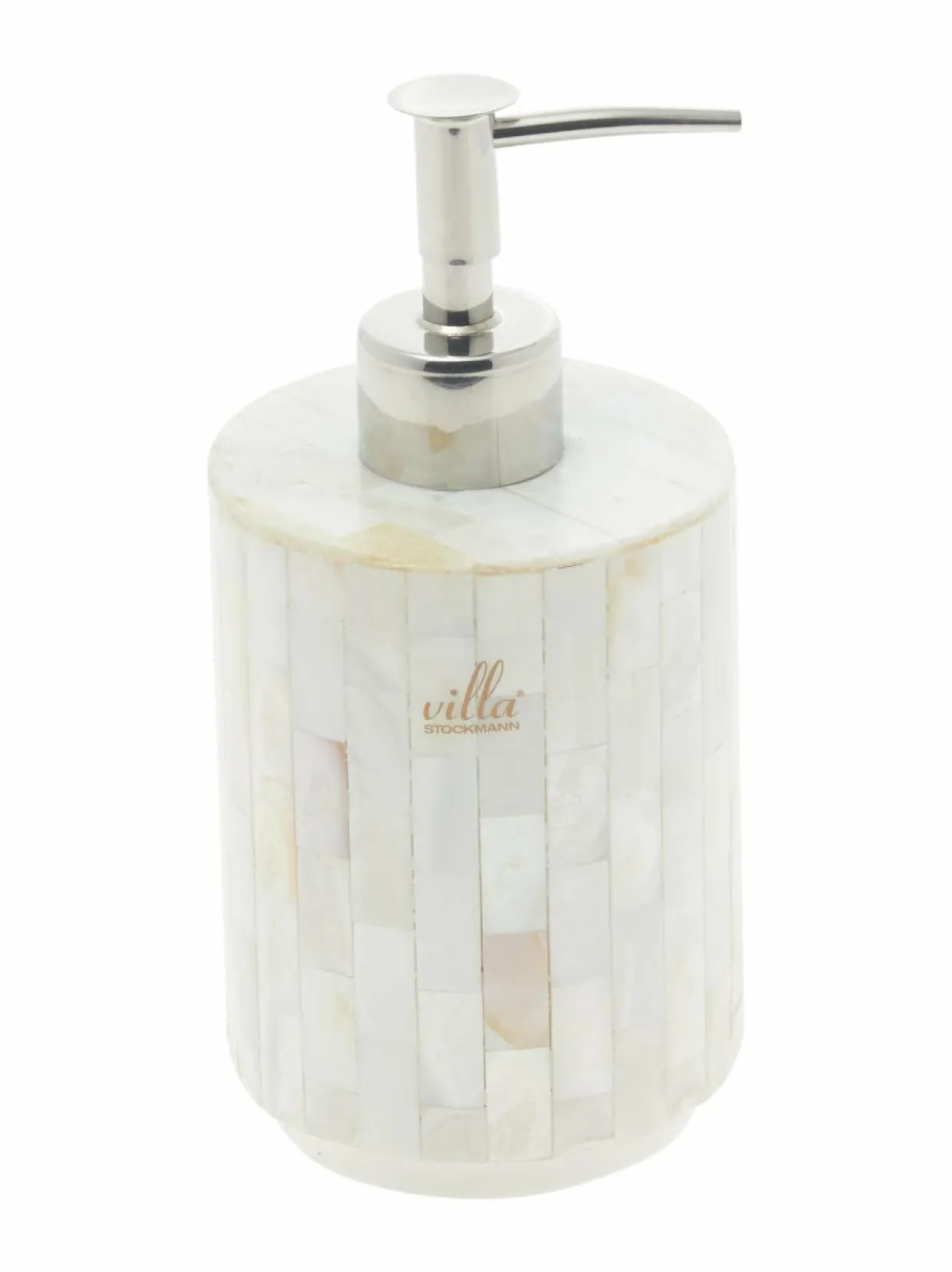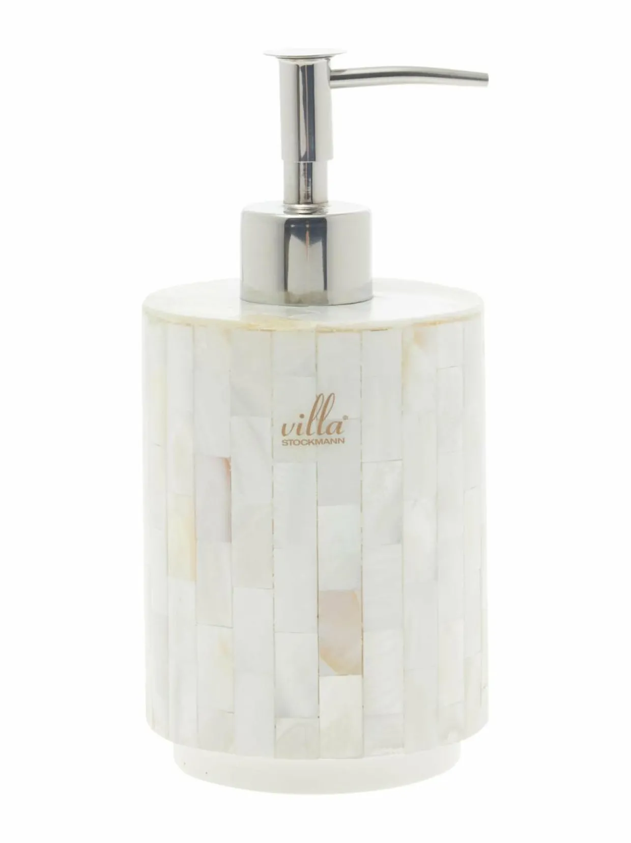 Elegantti saippua-annostelija Villa Stockmannilta. Siinä on kaunis helmeä muistuttava pinta. Perla-sarjasta on saatavilla myös muita ihastuttavia kylpyhuonetarvikkeita.
