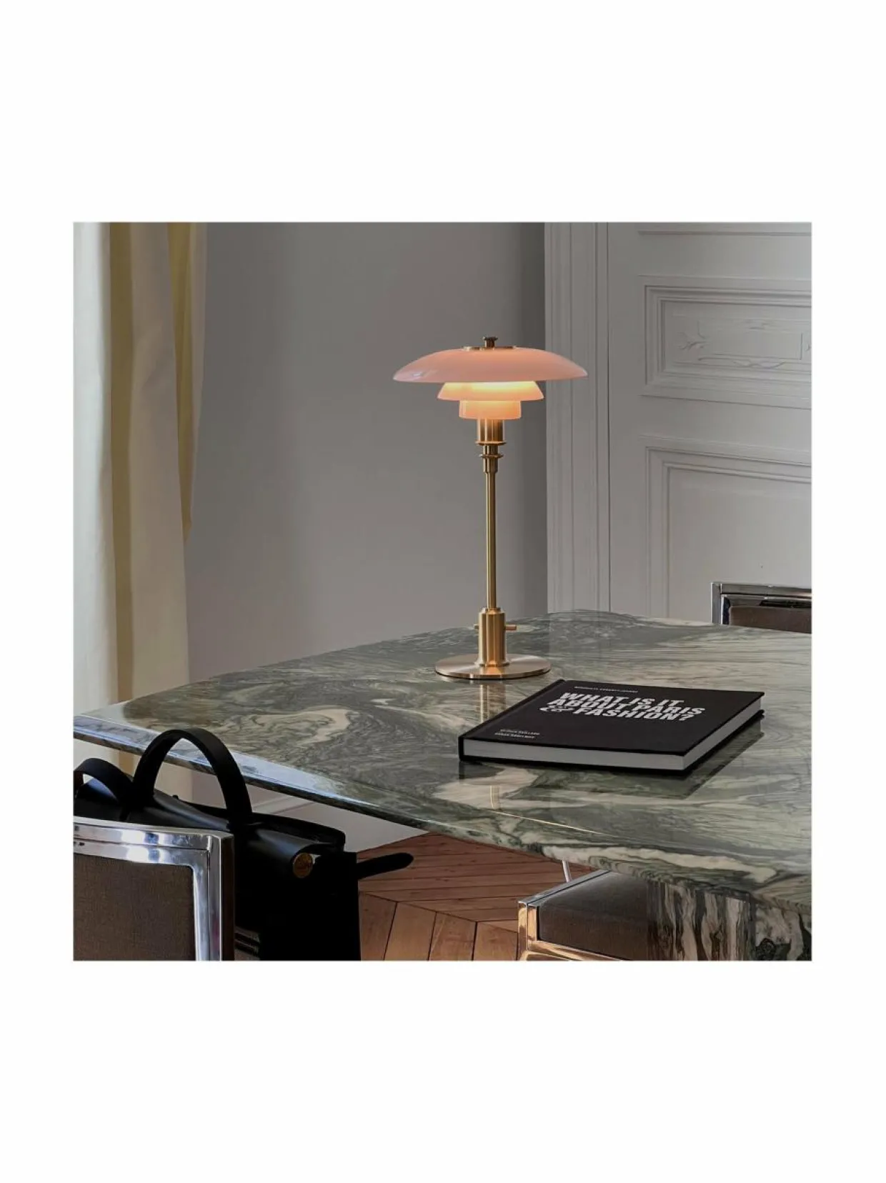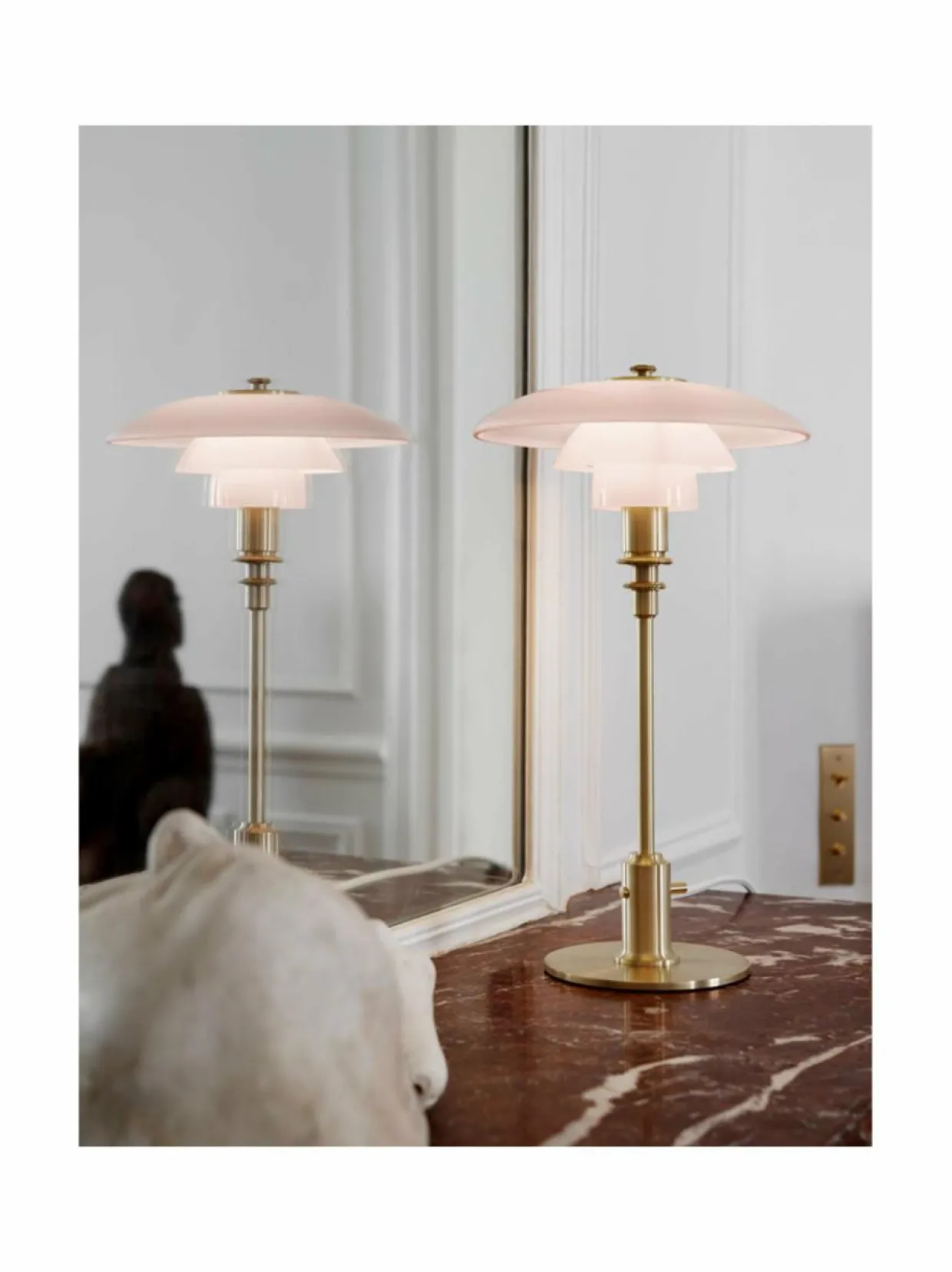 PH 2/1 Pale Rose -pöytävalaisin on uudistettu versio klassisesta Poul Henningsenin mallista. Tässä kolmivarjostinjärjestelmän valaisimen pienessä versiossa on suupuhalletut vaaleanroosat lasivarjostimet, joiden alapinta on hiekkapuhallettu valkoiseksi. Tämä saa aikaan kauniin lämpimän valon, joka on miellyttävä ja häikäisemätön.Lisäksi runko on valmistettu harjatusta messingistä, jonka ohuet juovat myötäilevät valaisimen muotoa. Kiillottamaton materiaali patinoituu kauniisti ajan myötä ja antaa valaisimelle persoonallisen ilmeen.Klassisen pöytävalaisimen modernin version kaikki yksityiskohdat on huolella mietitty. Käsin valmistetut elementit tekevät jokaisesta valaisimesta ainutlaatuisen esimerkin laadukkaasta käsityötaidosta.
