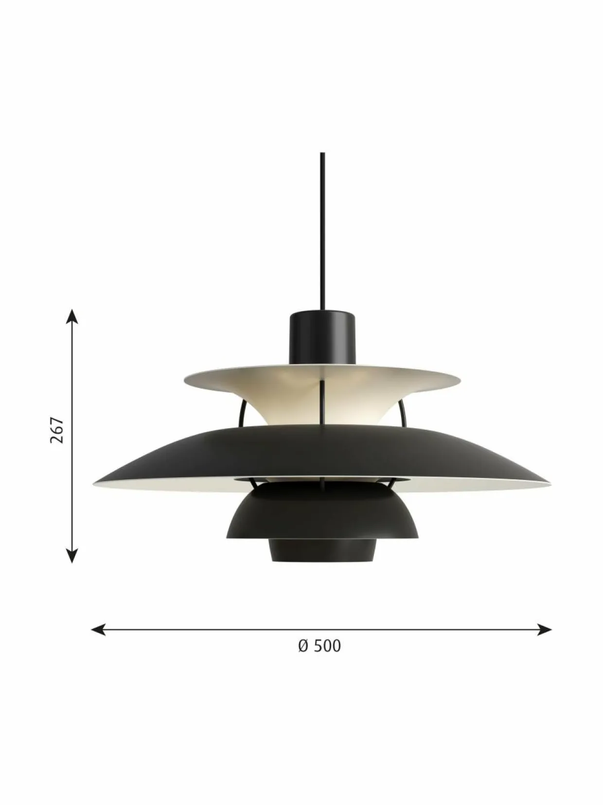 Louis Poulsenin PH 5 -valaisin antaa 100-prosenttisen häikäisemätöntä valoa. Poul Henningsen kehitti PH 5:n vuonna 1958 kiitellyn 3-varjostinjärjestelmänsä jatkeena. Valaisin tuottaa valoa alaspäin ja sivusuunnassa, ja valaisee näin itsensä.