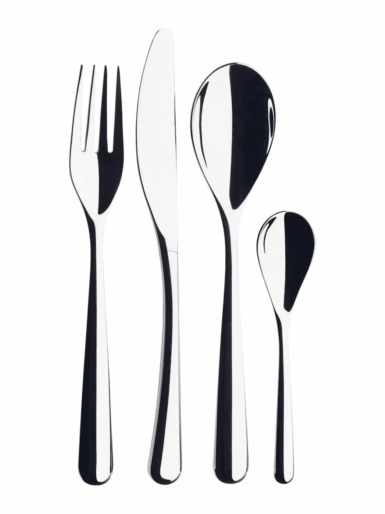 Tuotenumero168571138 Materiaaliruostomaton teräs PakkauskokoThe package contains 24 pieces of cutlery. ValmistusmaaKiina VäriSTEEL Koko24 pcs AvainsanatIittala, aterinsetti, kattaus, keittiö, aterimet, ruokailuhaarukka, ruokailuveitsi, lusikka, pikku lusikka
