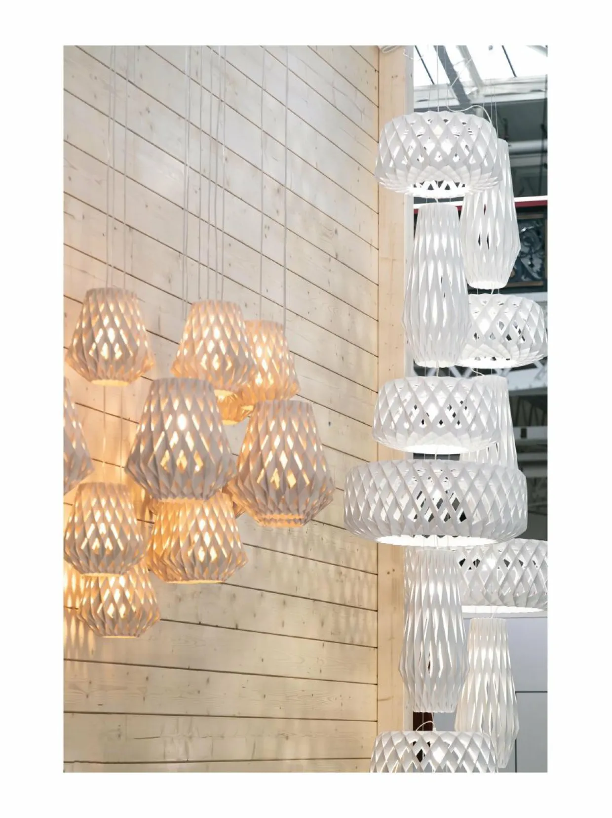 Tuukka Halosen suunnittelema Pilke-valaisin on tehty koivuvaneriosista, jotka on kiinnitetty toisiinsa ilman liimaa tai ruuveja. Valaisin jatkaa suomalaista käsityöperinnettä päivittäen sitä moderniin aikaan. Valaisimen punosmainen varjostin luo ainutlaatuisia varjoja ympäristöön. Valonlähteeksi käy E27-energiasäästölamppu.