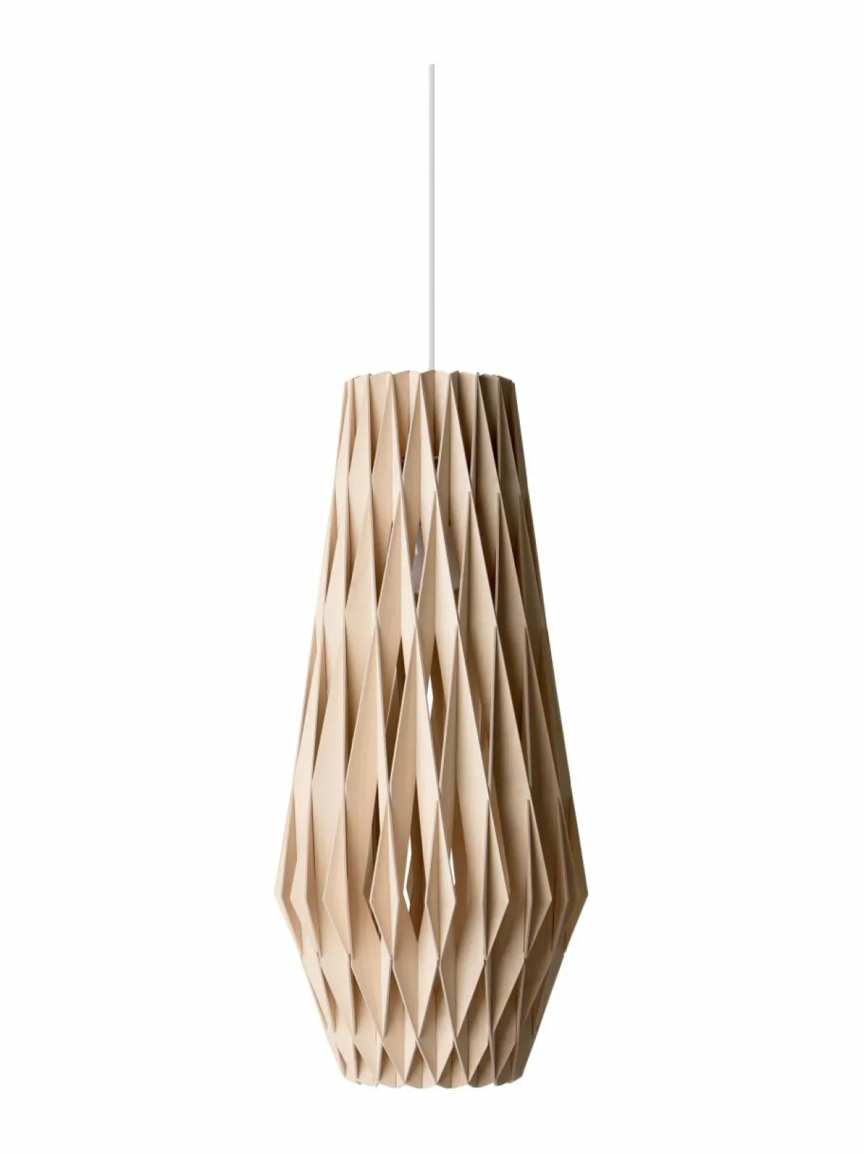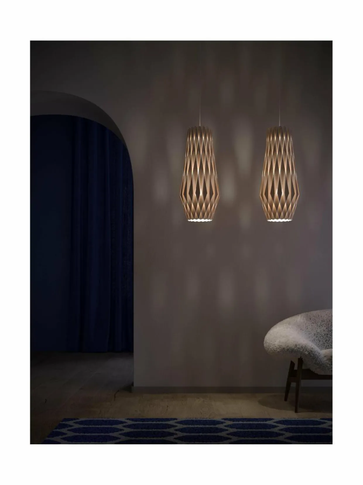 Pilke Signature 30/70 -riippuvalaisin sopii mihin tahansa kotiin tai julkiseen tilaan, asenna se korkeisiin tiloihin tai portaikkoihin yksitellen tai ryhmässä. Tuukka Halosen suunnittelema Pilke-valaisin on tehty koivuvaneriosista, jotka on kiinnitetty toisiinsa ilman liimaa tai ruuveja. Valaisin jatkaa suomalaista käsityöperinnettä päivittäen sitä moderniin aikaan. Se jakaa valoa ylellisesti sen geometrisellä puisella designilla. Valmistettu käsin suomalaisesta koivuvanerista. Valonlähteeksi käy E27-energiasäästölamppu.