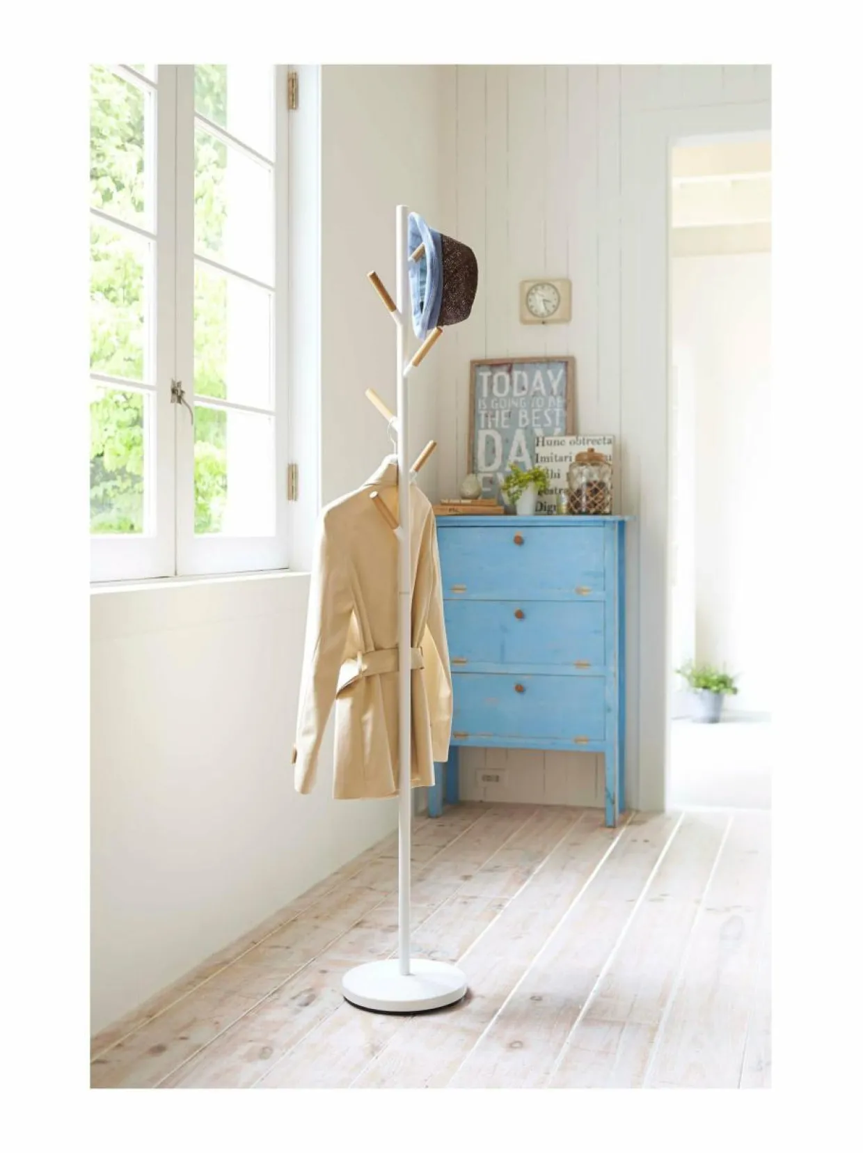 Yamazakin modernissa Plain-metallinaulakossa on 6 puista koukkua, jotka tuovat ulkoasuun lämpöä. Jämäkässä naulakossa takit, huivit ja pienet laukut pysyvät hyvässä järjestyksessä. Naulakko on toimiva valinta niin eteiseen kuin esim. makuuhuoneeseenkin.