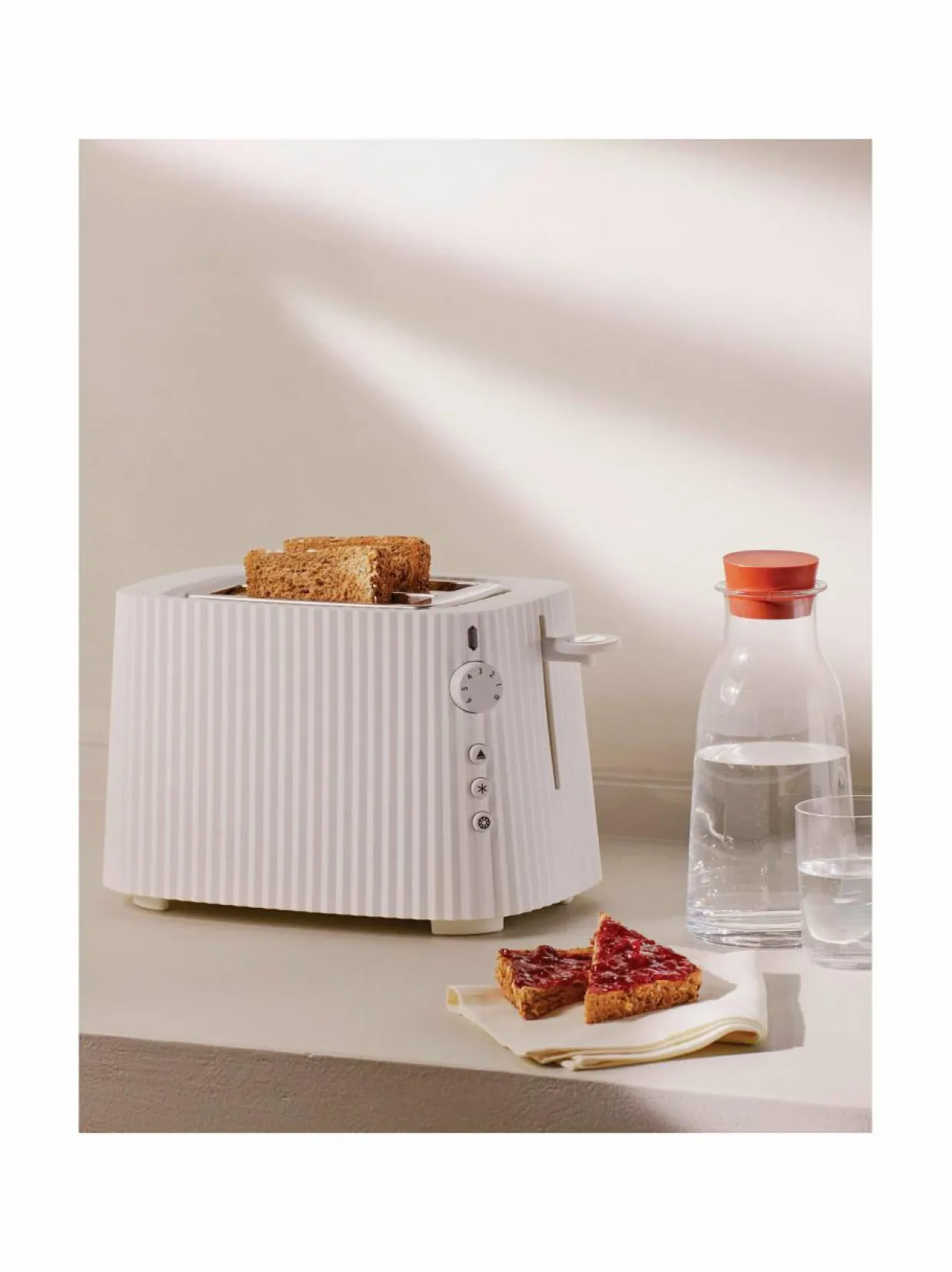 Veistosmaisen Alessi Plissé -leivänpaahtimen pinta on kuin pliseerattua kangasta. Kauniin leivänpaahtimen jättää mielellään näkyville keittiötasolle. Michele de Lucchin suunnittelema leivänpaahdin on valmistettu termoplastisesta hartsista.