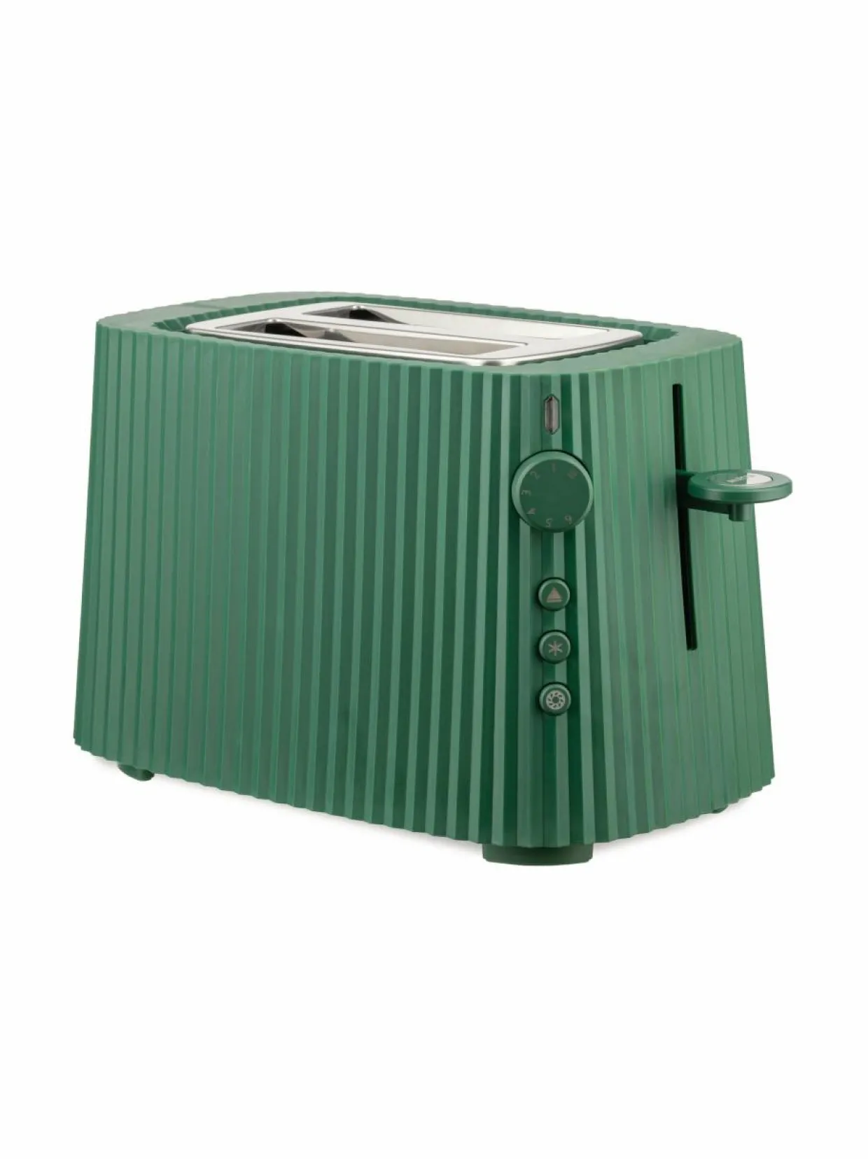 Veistosmaisen Alessi Plissé -leivänpaahtimen pinta on kuin pliseerattua kangasta. Kauniin leivänpaahtimen jättää mielellään näkyville keittiötasolle. Michele de Lucchin suunnittelema leivänpaahdin on valmistettu termoplastisesta hartsista.