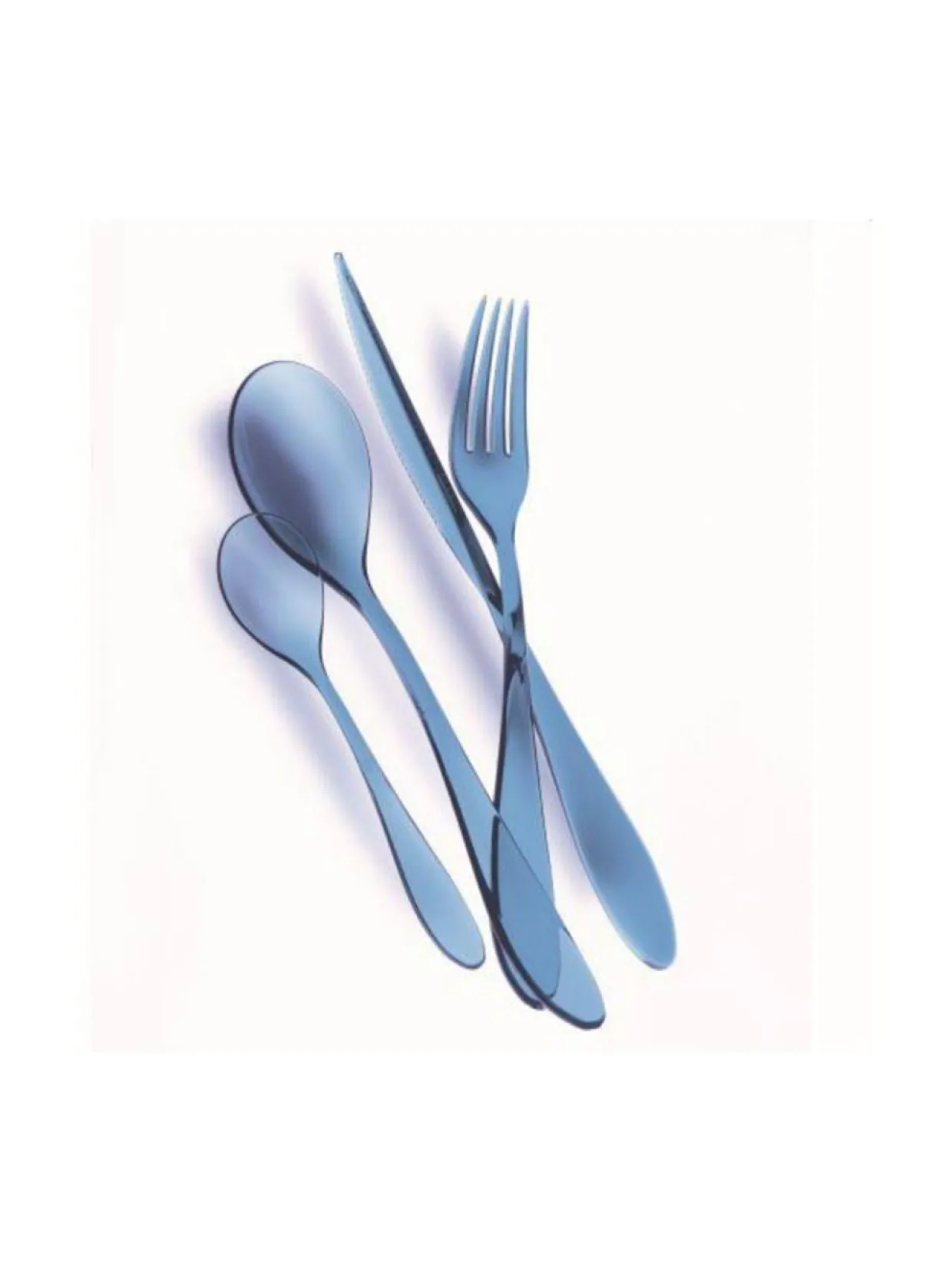 Policarbonato-aterinsetti sisältää 6 ruokahaarukkaa, 6 ruokaveistä, 6 ruokalusikkaa ja 6 kahvilusikkaa.Tuotenumero761874 VäriSAPHIR