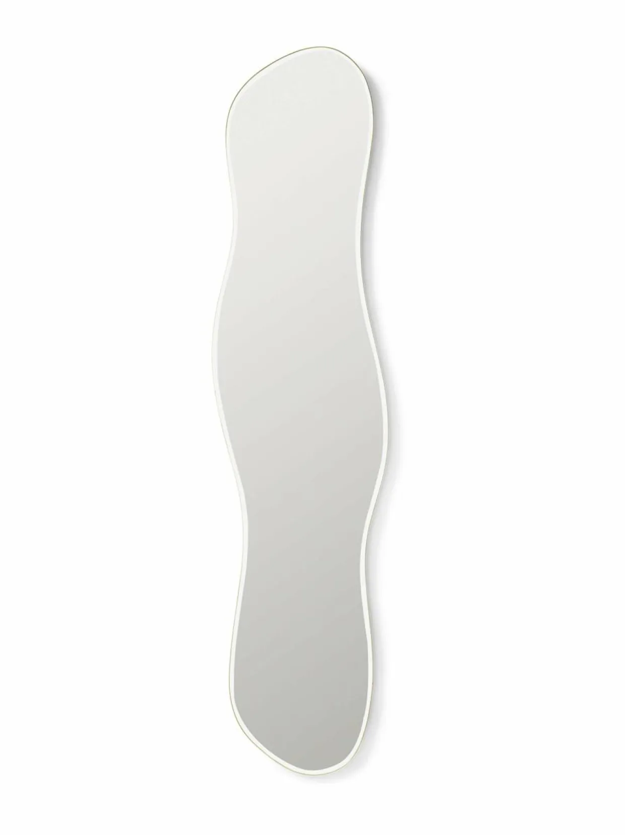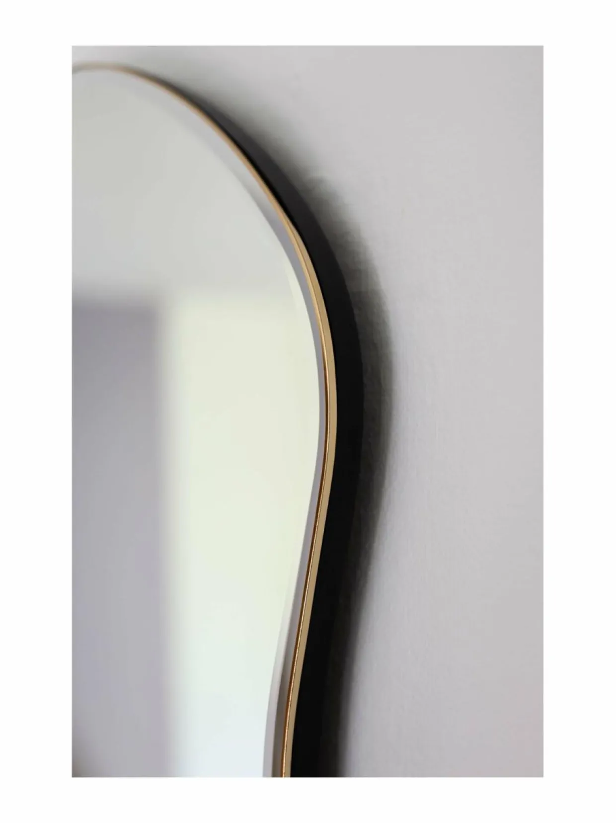 Tämä upea peili tuo kotiisi orgaanisia muotoja, muuttaen käytännöllisen peilin näyttäväksi sisustuselementiksi. Peilin suunnittelussa on saatu inspiraatiota vapaasti virtaavan veden liikkeistä. Suuri kokovartalopeili takaa täydellisen heijastuksen, tehden siitä ihanteellisen valinnan makuuhuoneeseen, eteiseen tai mihin tahansa alueeseen, joka vaatii kokonaisvaltaista näkymää. Valmistettu peililasista, jonka alustana on MDF messinkipinnoitetulla sinkkirungolla.