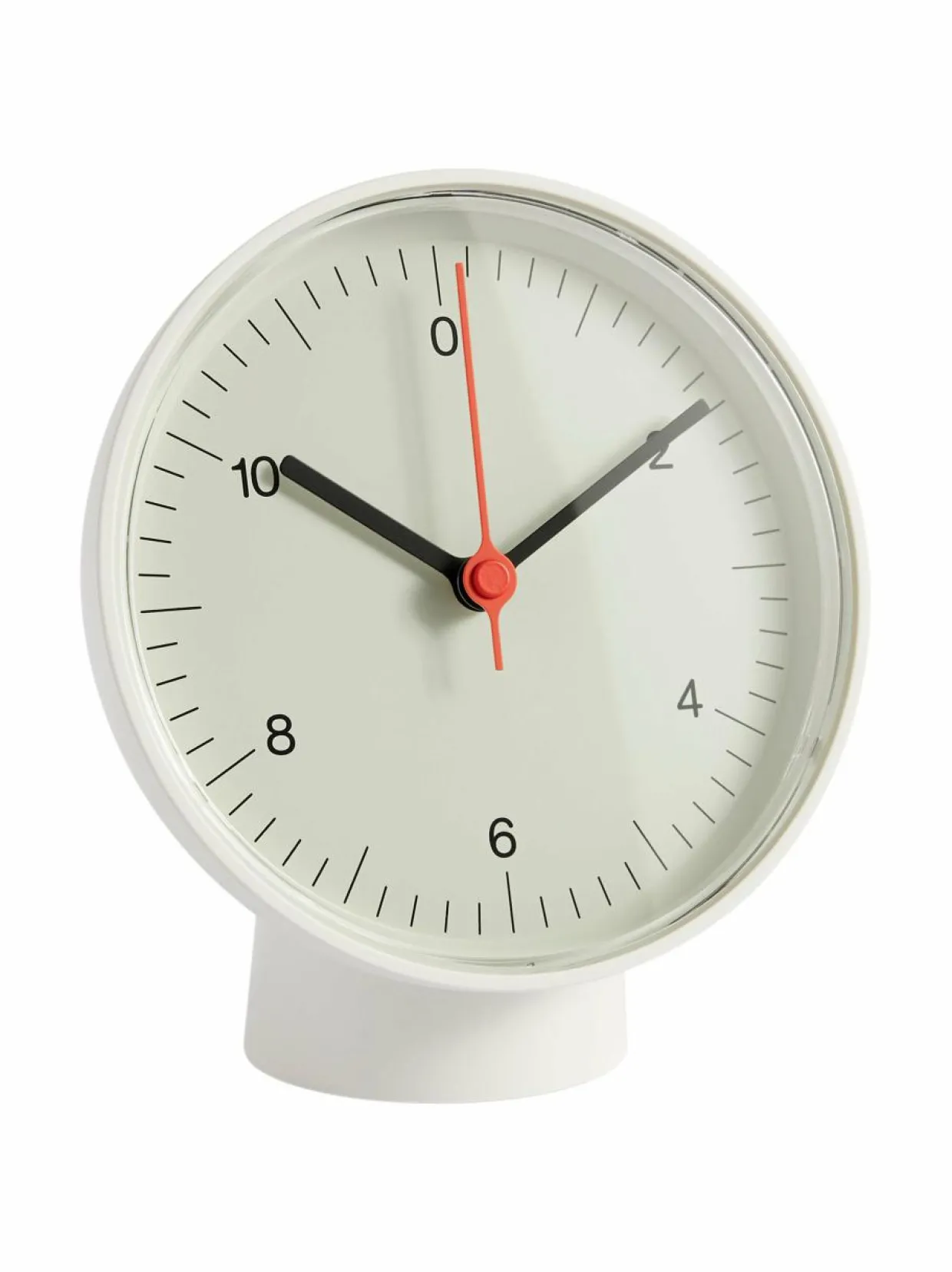Jasper Morrisonin suunnittelema tyylikäs ja käytännöllinen pöytäkello, joka sopii selkeän ja yksinkertaisen muotoilunsa ansiosta täydellisesti kaikkiin huoneisiin ja ympäristöihin. Lähemmin katsottuna kellotaulusta löytyy pieni leikkisä erikoisuus: perinteisten kello kolmen, kuuden, yhdeksän ja kahdentoista sijaan tämä pöytäkello nimittäin esittelee aikaa parillisilla numeroilla. Sen irrotettava jalusta mahdollistaa sen sijoittamisen joko vaakasuoralle pinnalle tai ripustamisen seinälle. Lähes äänettömän sekuntiosoittimen ansiosta se sopii vaikka makuuhuoneen yöpöydälle. Toimii yhdellä AA-paristolla (ei sisälly pakkaukseen).