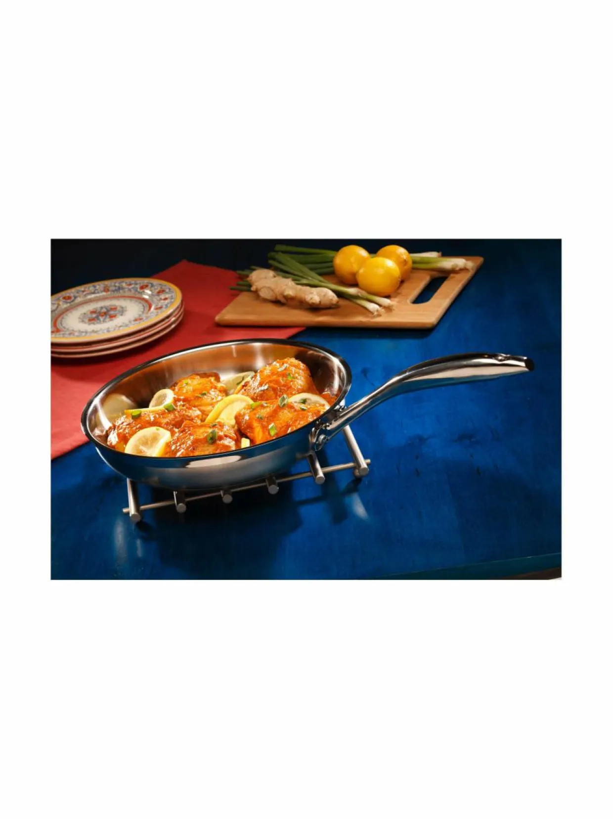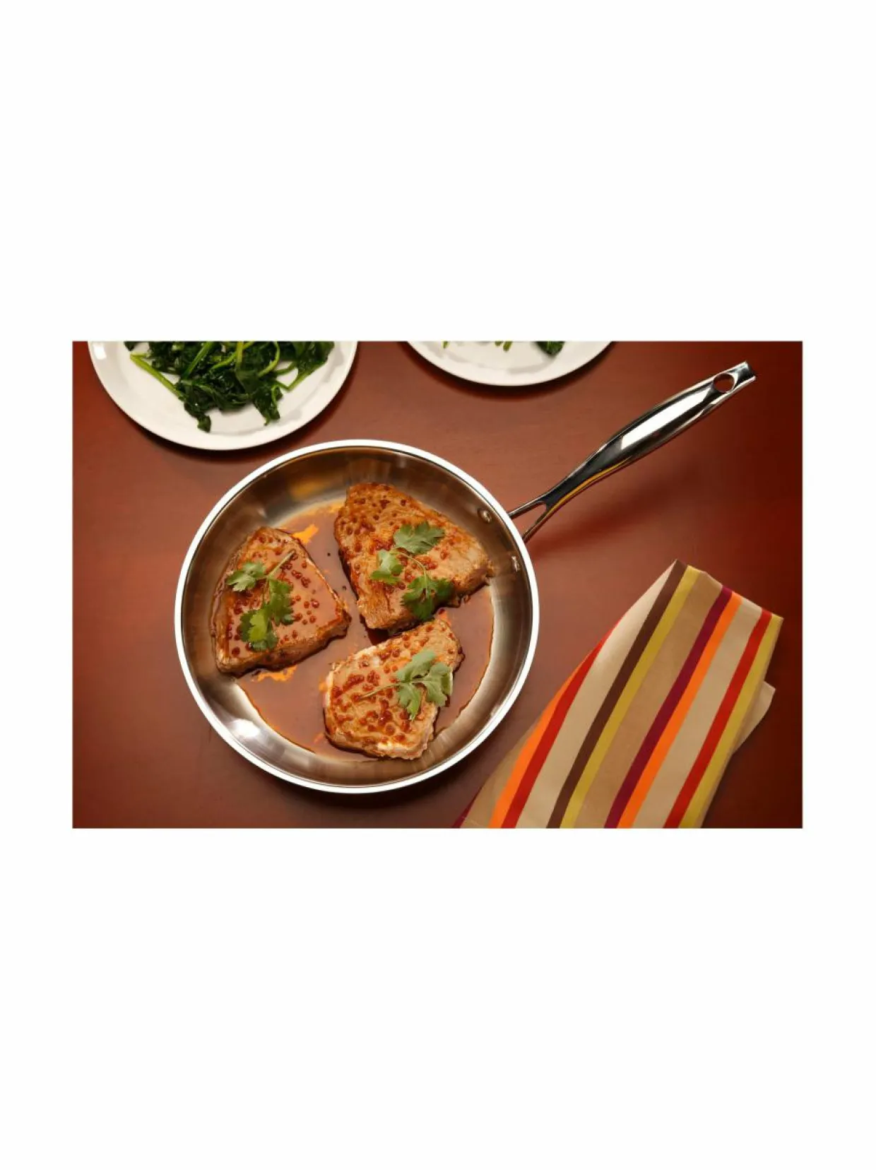 Premium Steel -paistinpannu on kestävää ja lämmön tasaisesti jakavaa 18/10 ruostumatonta terästä. Pinnoittamaton rosteripannu sopii päivittäiseen ruoanlaittoon ja kaikille liesityypeille. Pohjan magnetisoivan teräksen ansiosta erillistä induktiorakennetta ei tarvita. Pohjan alumiiniydin levittää lämmön tasaisesti. Tukeva kahva ja muotoillut reunat helpottavat kaatamista. Pannu on konepesun kestävä, mutta suositellaan käsinpesua.