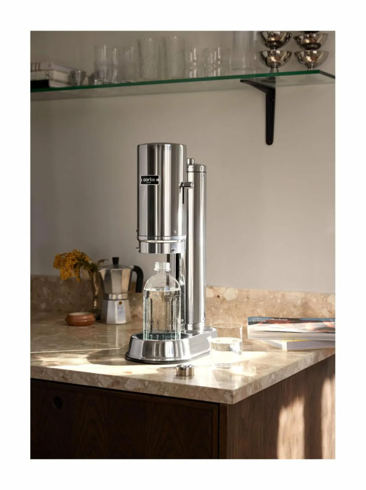 Aarke Pro on edistyksellinen ja helppokäyttöinen hiilihapotuslaite. Nyt innovatiivisen Push-to-Lock™-ratkaisun ansiosta hiilihapotusprosessia voidaan hallita yhdellä kädellä. Aseta pullo ensin paikalleen, laske kansi ja paina hiilihapotuspainiketta. Kun vesi on hiilihapotettu, teräskotelo nousee ylös ja voit nauttia ihanasta kuplivasta vedestä.