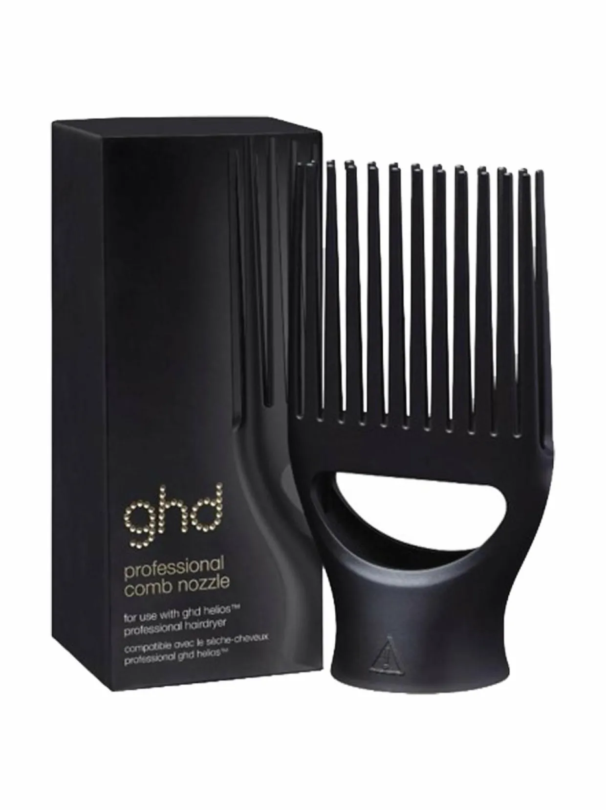 ghd:n Professional -kampasuutin vie laineikkaiden, kiharien tai kähärien hiusten muotoilun uudelle tasolle. Yhteensopiva ghd Helios™ -hiustenkuivaajien kanssa.Yhteistyössä huippustylistien kanssa kehitetty ammattimainen hiustenkuivaajan lisäosa. Suuttimessa on kaksi riviä vahvistettuja, kapenevia piikkejä, jolla kampaat, kohotat ja muotoilet laineikkaat, kiharat tai kähärät hiukset hellävaraisesti. Liitä suutin ghd Helios™ -hiustenkuivaajaan ja luo nostetta tyvestä latvaan.