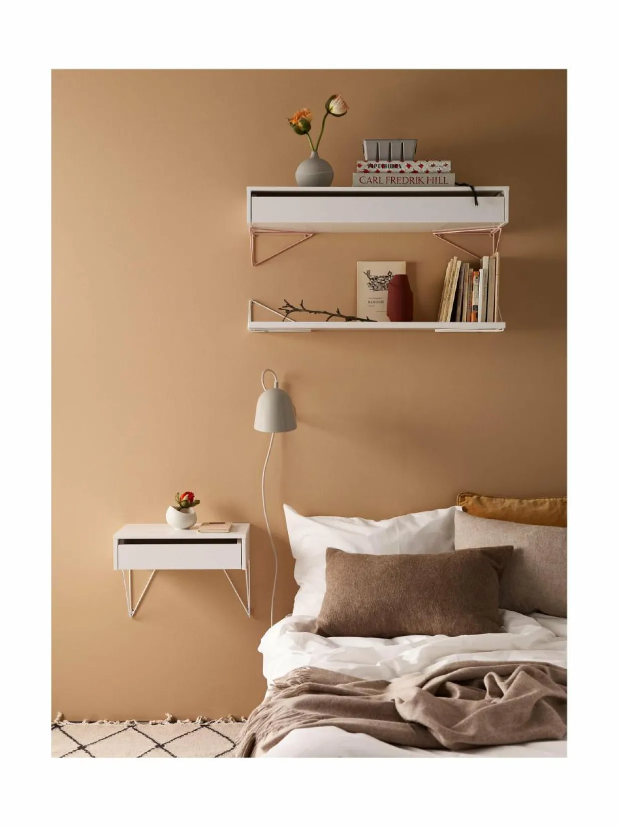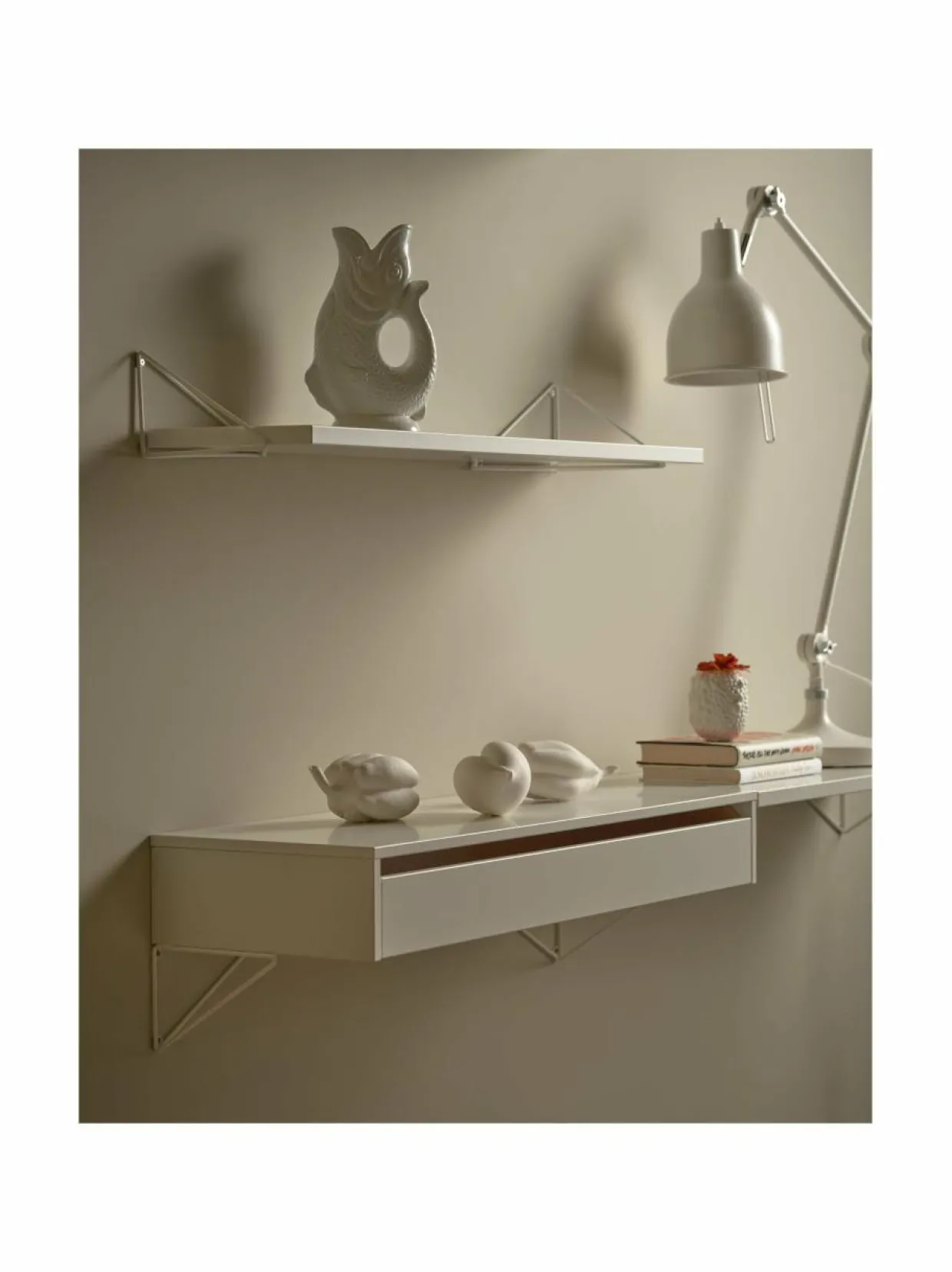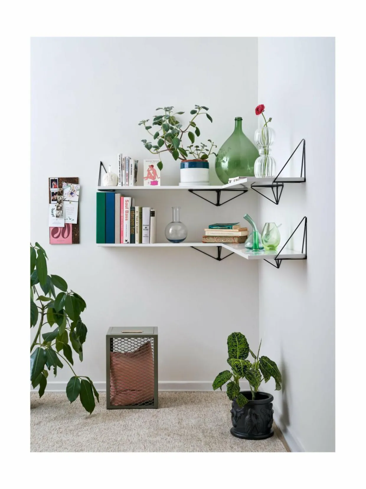 Ruotsalaisen Mazen Pythagoras-sarja sisältää seinähyllyjä, kiinnikkeitä ja paljon muuta. Kokoa kokonainen hyllyjärjestelmä tai laita seinälle yksi hylly, johon asetat esille rakkaimmat muistosi. Voit valita eri väreistä, määrästä ja kulmista – Pythagoras-sarja sisältää loputtoman määrän vaihtoehtoja.
