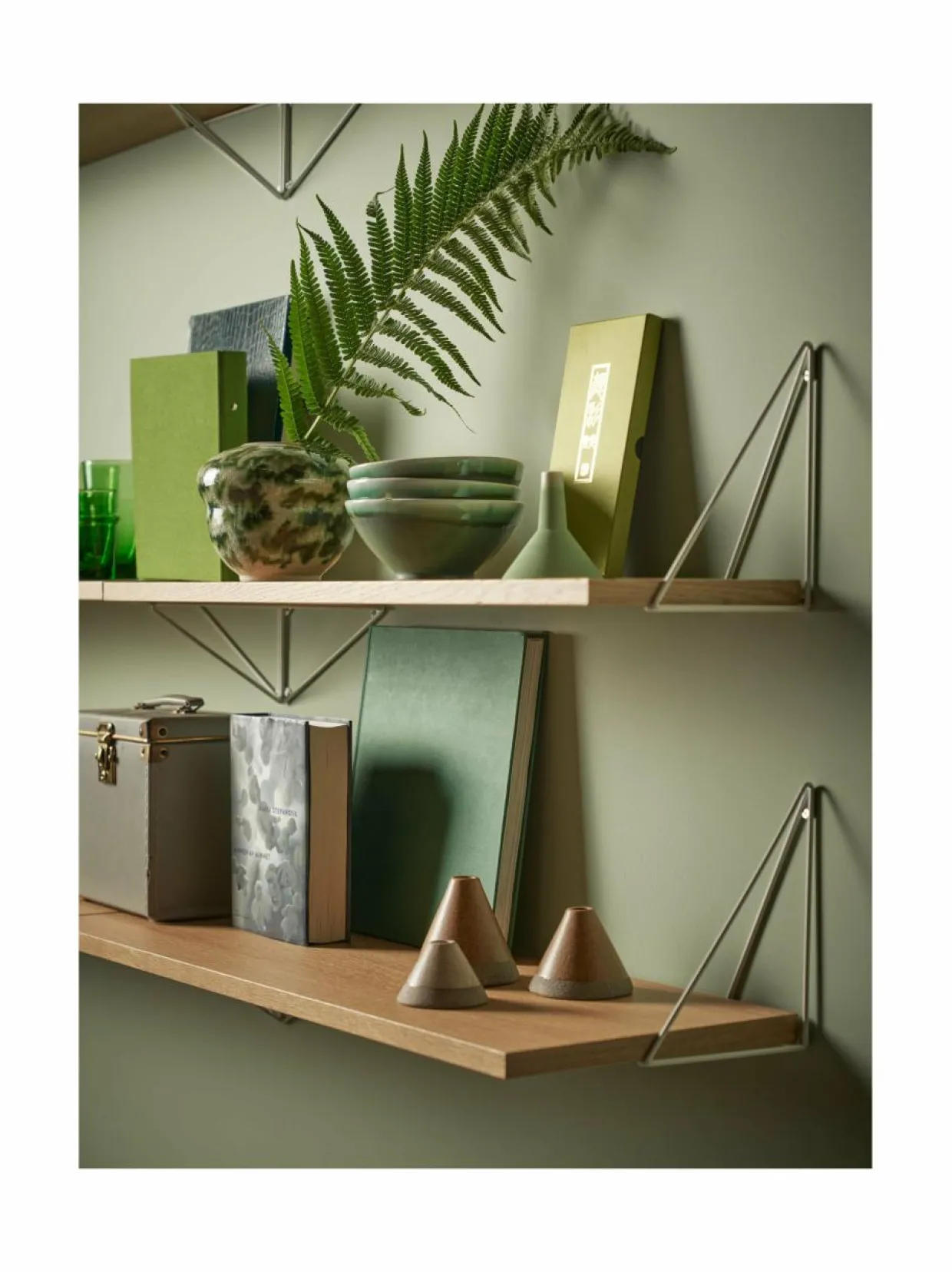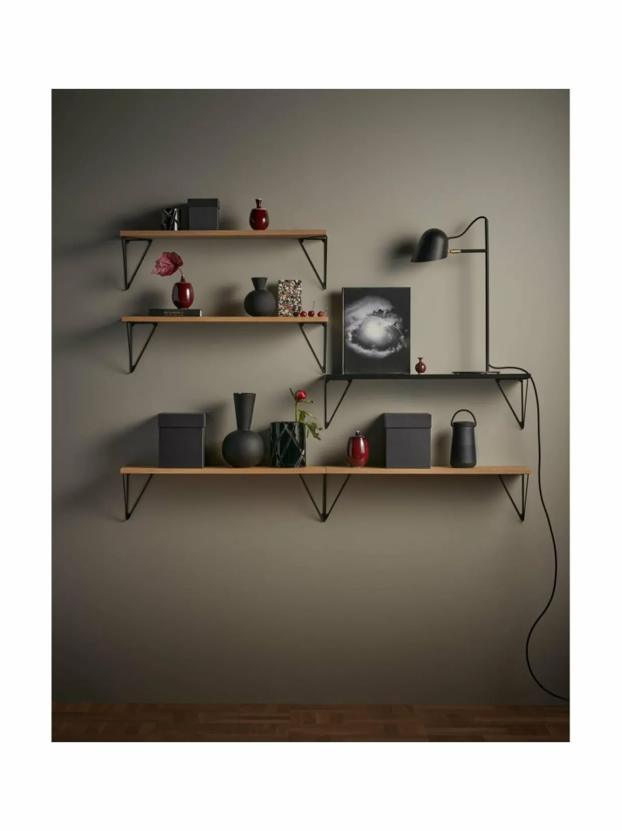 Ruotsalaisen Mazen Pythagoras-sarja sisältää seinähyllyjä, kiinnikkeitä ja paljon muuta. Kokoa kokonainen hyllyjärjestelmä tai laita seinälle yksi hylly, johon asetat esille rakkaimmat muistosi. Voit valita eri väreistä, määrästä ja kulmista – Pythagoras-sarja sisältää loputtoman määrän vaihtoehtoja.