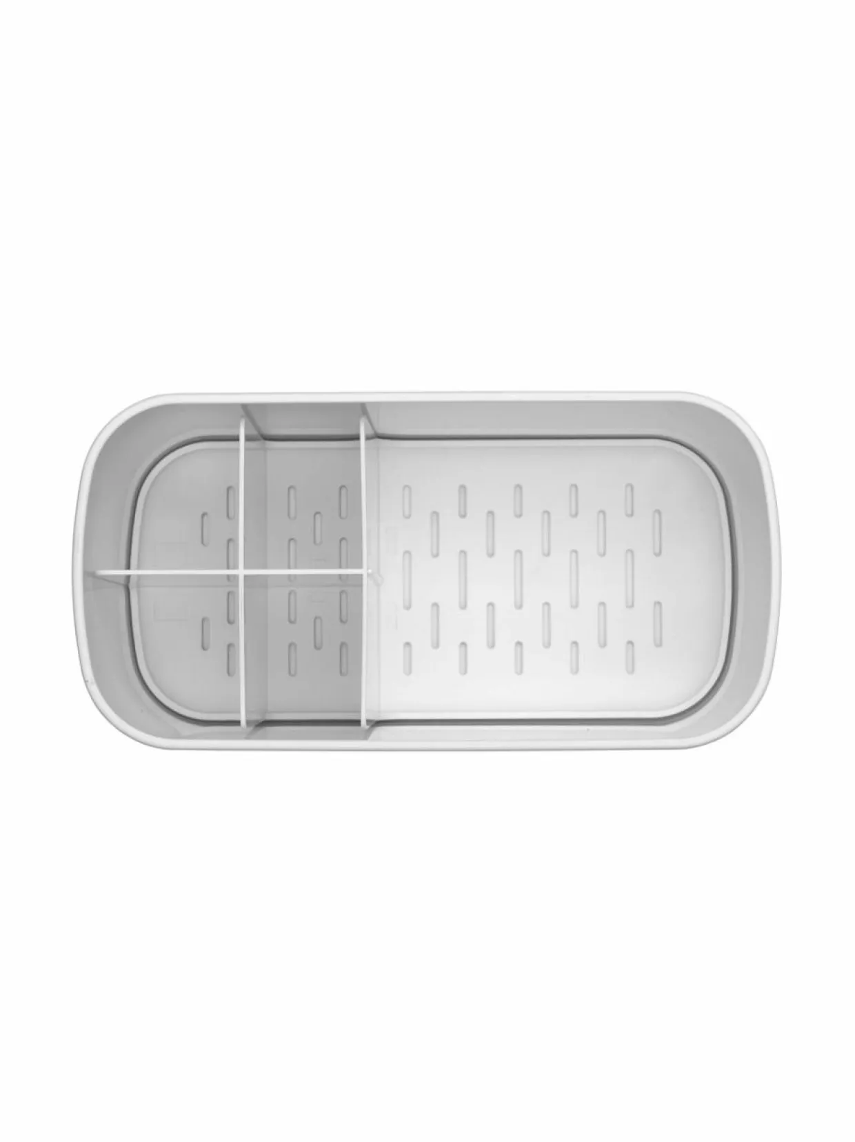 Brabantia ReNew kylpyhuoneenjärjestelijä pitää kylpyhuoneen pienet tavarat hyvässä järjestyksessä. Minimalistinen muotoilu sopii hyvin moderniin kylpyhuoneeseen. Pohjassa on ulos nostettava jaottelija, joka helpottaa puhdistamista. Pohjassa myös liukueste. Mitat 19,6 x 9,9 x 11 cm. 5 vuoden takuu.