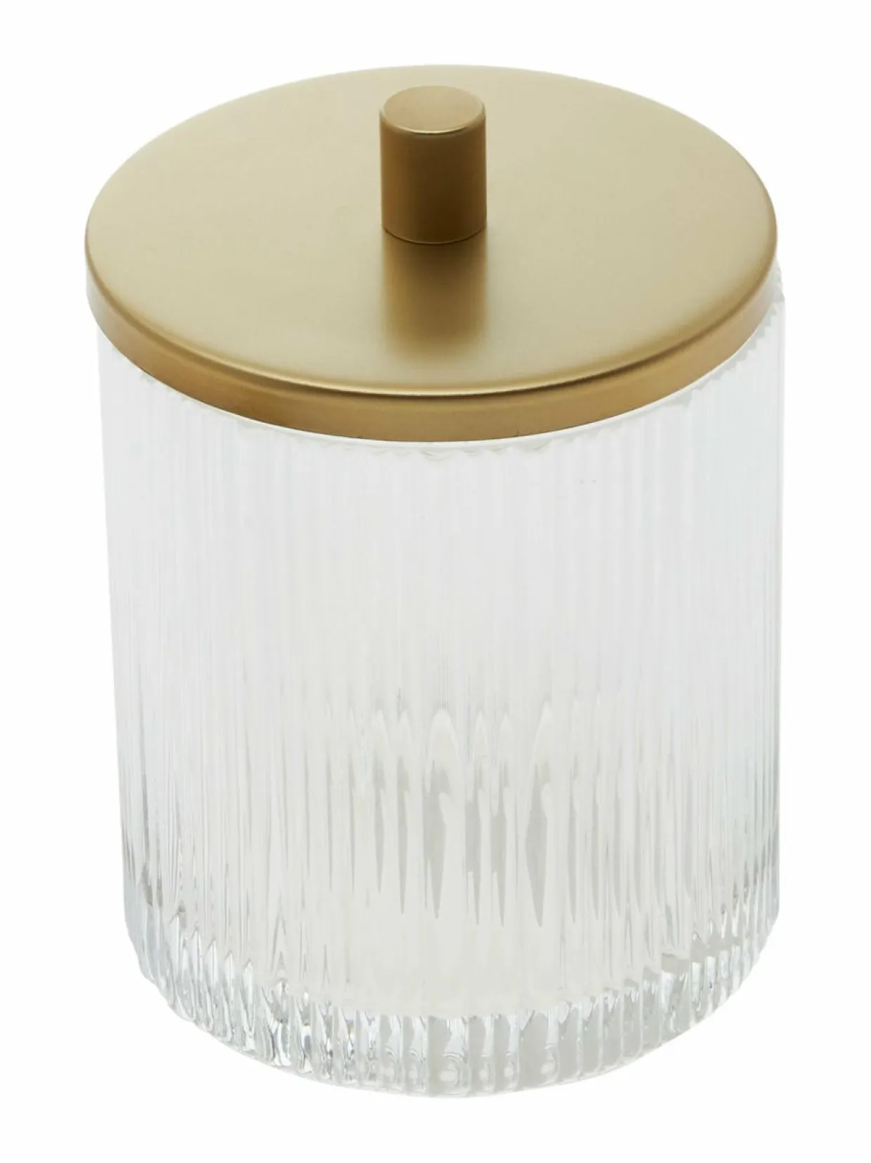 Tuotenumero170144382 MateriaaliLasi, metalli ValmistusmaaKiina VäriCLEAR GLASS/MATT GOLDEN Koko9,8 x 13,6 x 9,8 cm AvainsanatVilla Stockmann, lasinen vanurasia, kylpyhuone rasia, kylpyhuoneen sisustus, lasirasia, lasipurkki, vanupurkki, purkki, kannellinen, lastiastia, hammasharjamuki, lasimuki