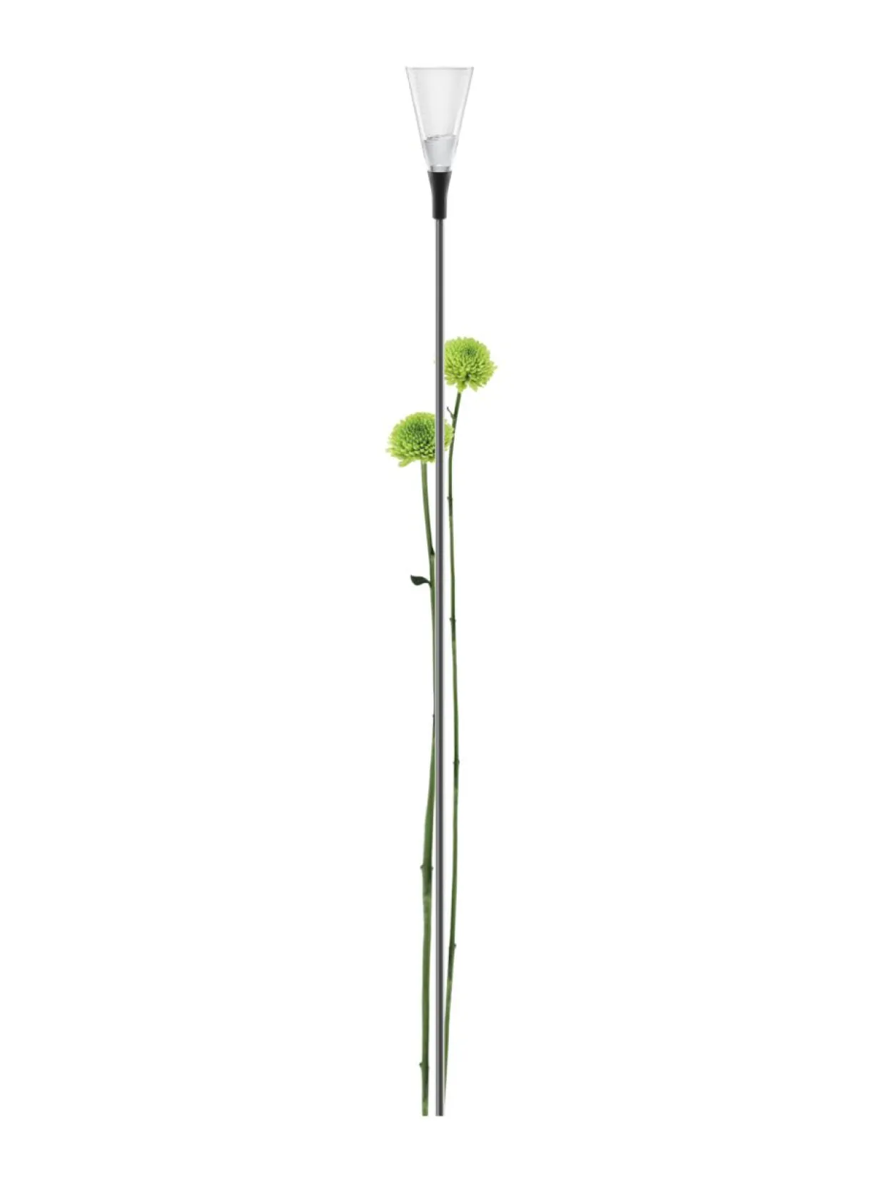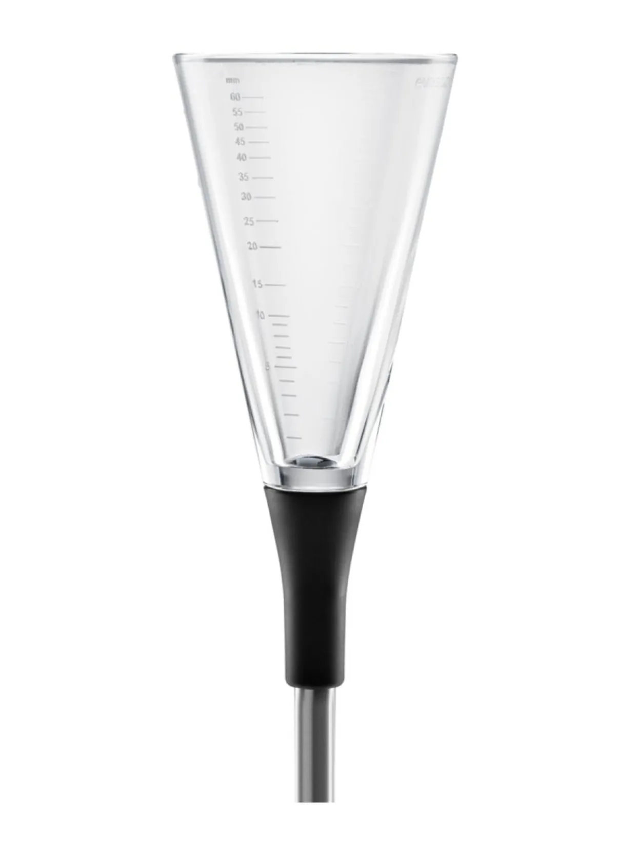 Eva Solon minimalistisesti muotoiltu sademittari näyttää tyylikkäältä niin kukkapenkissä, terassin kupeessa kuin pihapolun reunallakin. Valitse vain sopiva paikka ja työnnä teräksinen varsi maahan. Sadepisarat kerääntyvät suppilomaiseen lasisäiliöön, jossa on helppolukuinen mitta-asteikko sekä millimetreissä (0-60 mm) että tuumissa (0-2,5). Vesisäiliö on helppo irrottaa teräksisestä varresta säiliön tyhjäämistä varten. Pakkasenkestävä lasi mahdollistaa ympärivuotisen käytön ja tarvittaessa säiliö on vaivaton puhdistaa tiskikoneessa. Sademittarin korkeus on 116 cm ja lasisäiliön halkasija 13 cm.
