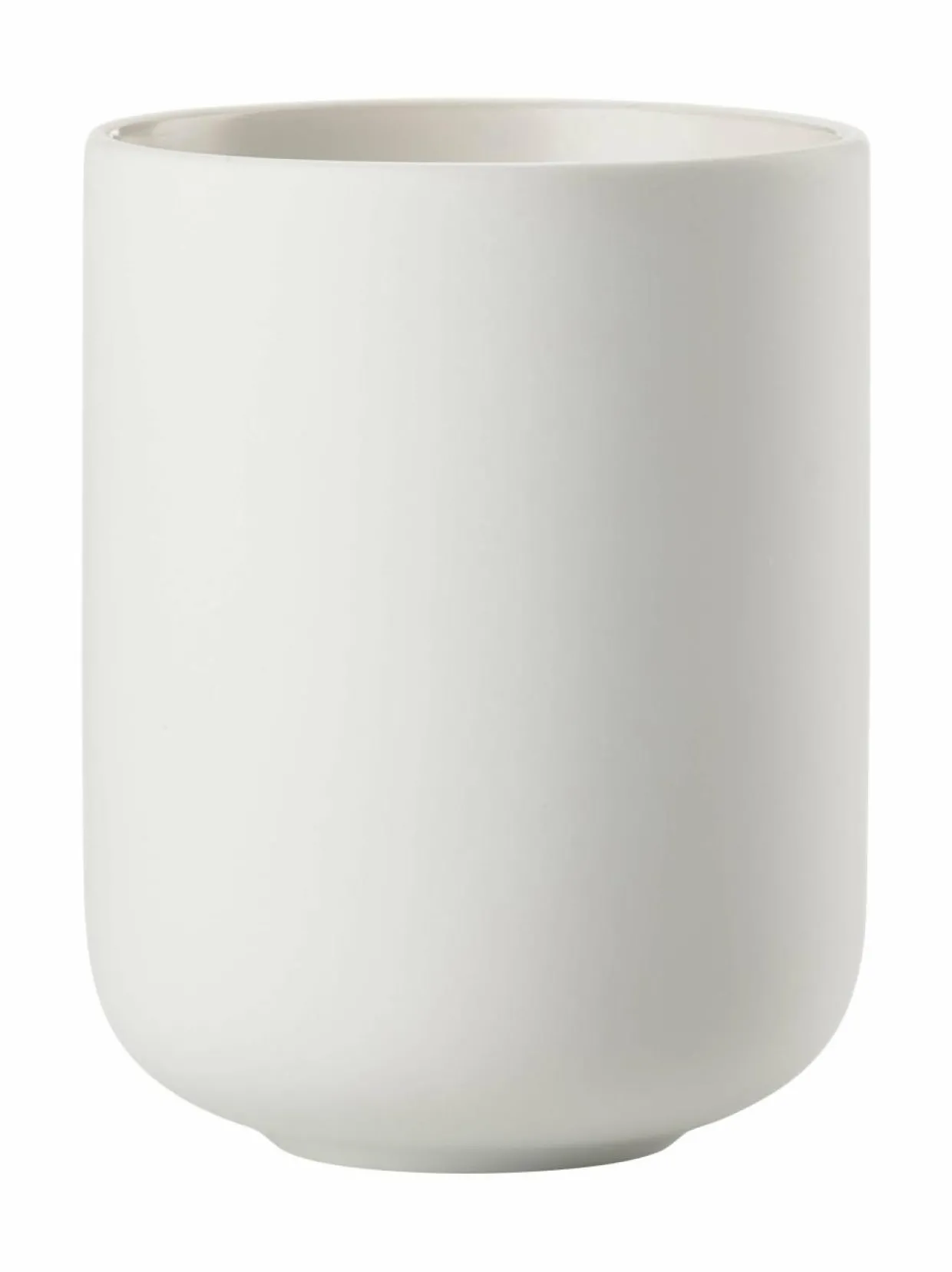 Zone Denmark -merkin klassinen hammasharjamuki on valmistettu keramiikasta, joka luo rauhoittavan ilmapiirin kylpyhuoneeseen. Kivitavaran paino ja pyöreä pohja pitävät kupin tukevasti paikallaan. Voit hankkia useamman ja käyttää niitä meikkisiveltimille, parranajovälineille tai muille päivittäisille suosikeille, jotka haluat pitää käden ulottuvilla. Sen pyöristetyt kulmat ja pehmeät muodot luovat harmonisen kokonaisuuden. Mitat: 7,4 x 9,5 cm.