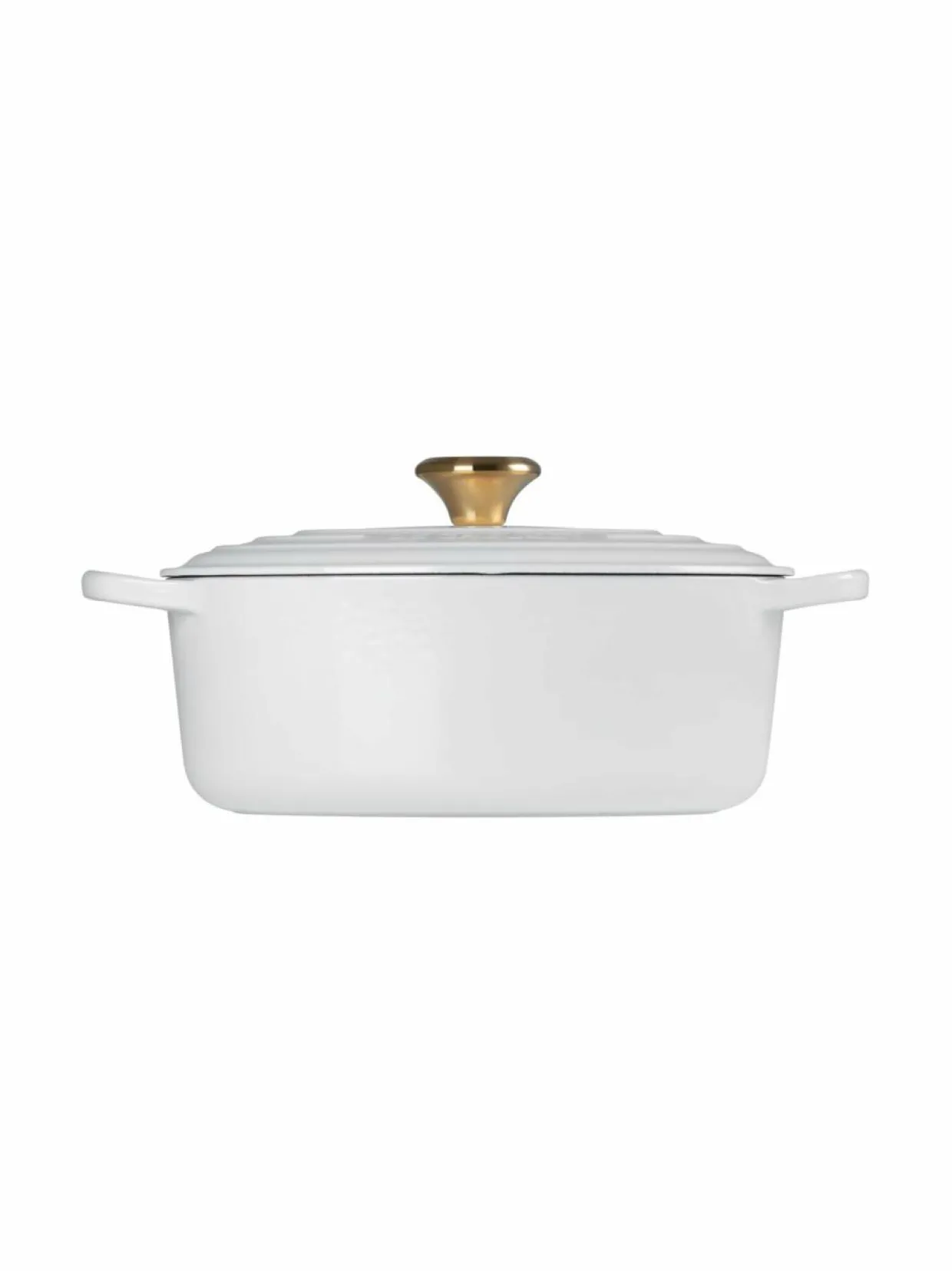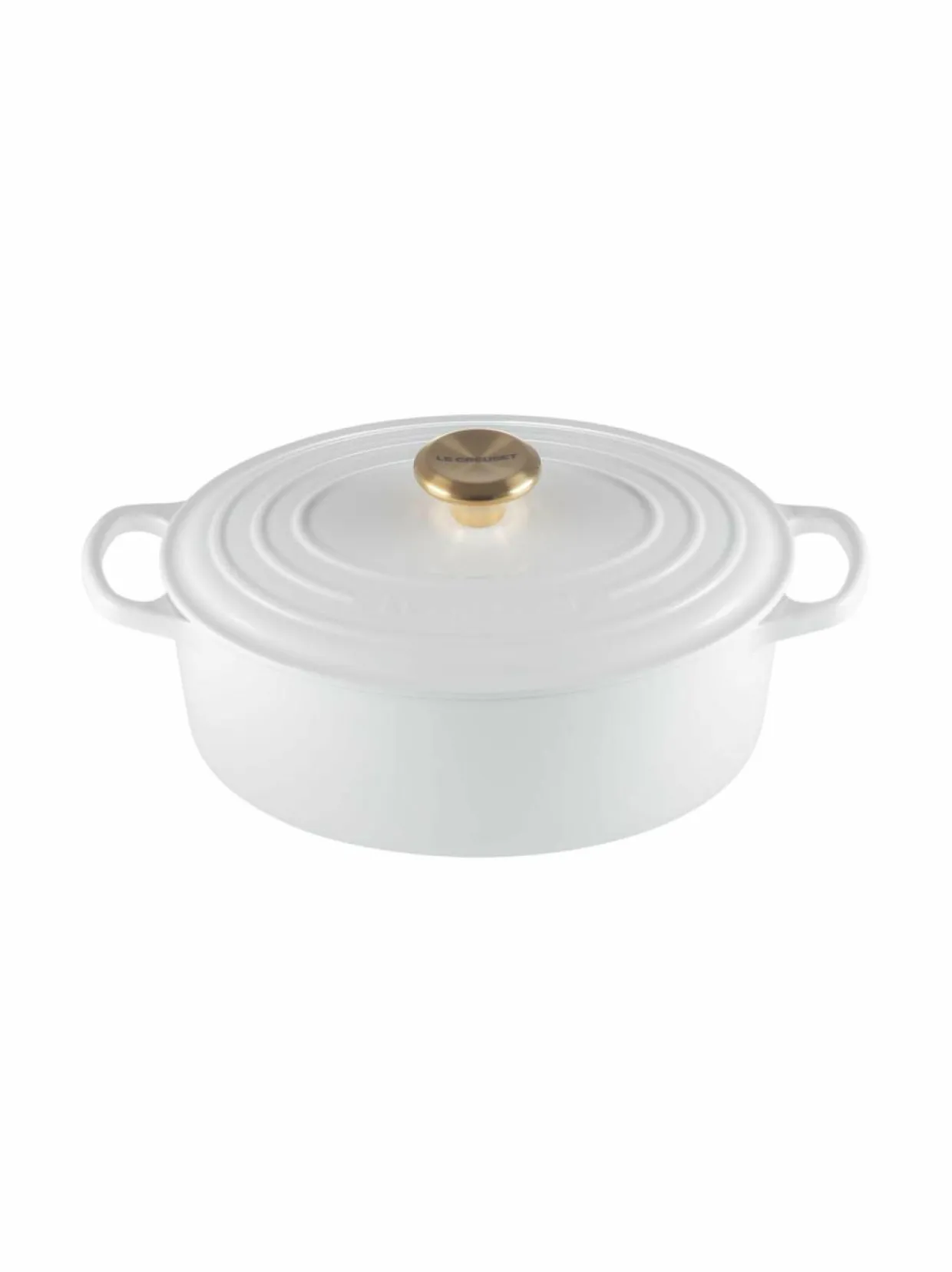 Le Creuset -merkin tilava ja monikäyttöinen valurautapata on suunniteltu kestämään vuosikymmenien käyttöä. Tämä ovaali pata on varustettu elegantilla kultaisella nupilla, mikä antaa sille ylellisen ja ajattoman ilmeen. Sen tilavuus on 4,1 litraa, joten se sopii erinomaisesti suurempien ruokamäärien valmistamiseen.
