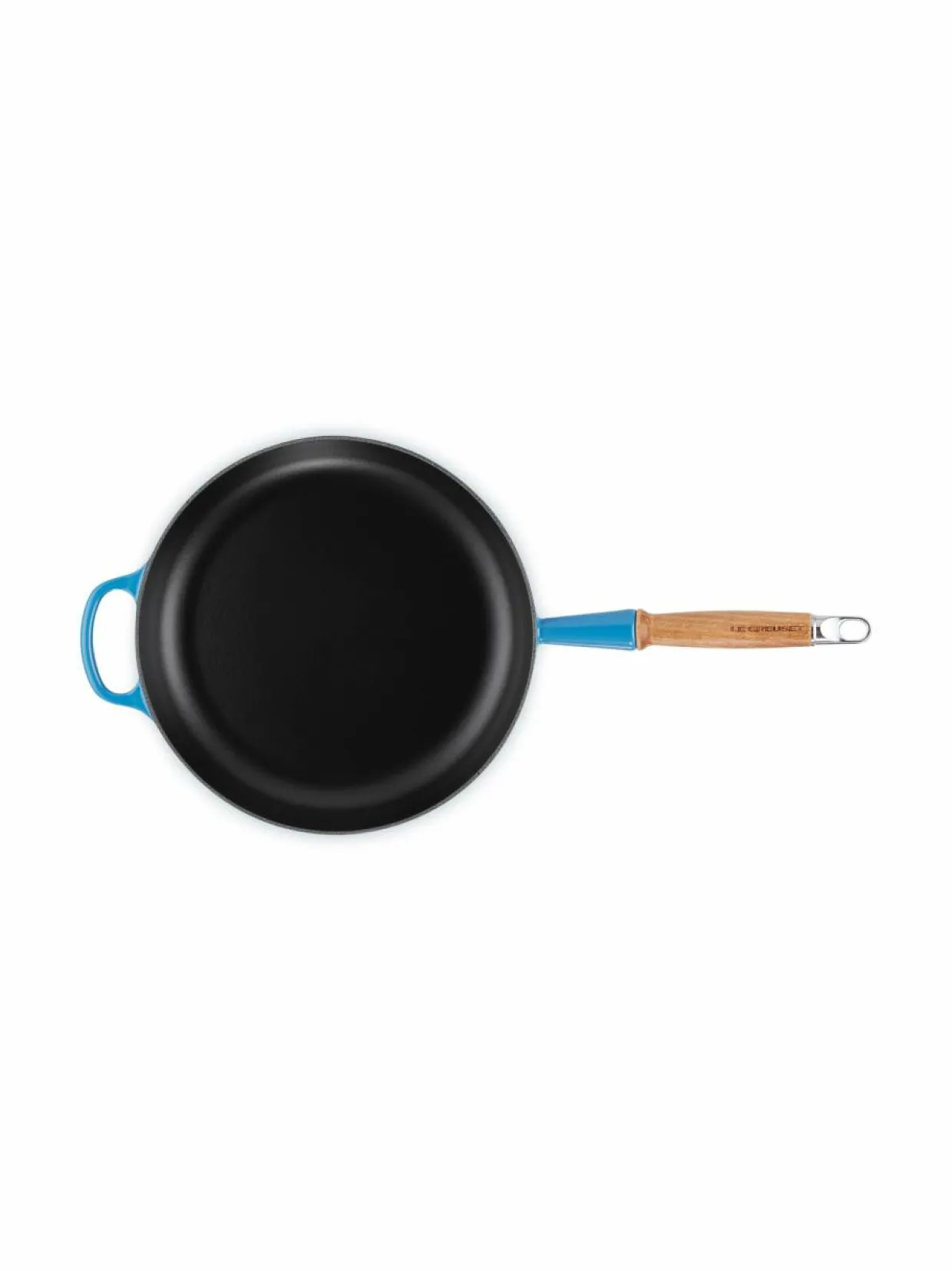 Le Creuset Signature-paistinpannussa on emaloitu sisäpinta, joka on ihanteellinen paistamiseen korkeissa lämpötiloissa. Valuraudan ansiosta lämpö jakautuu tasaisesti. Se on materiaalina pitkäikäinen ja kestää kovaa kulutusta. Pannun voi nostaa suoraan liedeltä pöydälle, ruoka pysyy lämpimänä pitkään. Ajattomasti muotoiltu laadukas pannu on saatavilla eri koko- ja värivaihtoehdoissa. Pannu sopii kaikille liesityypeille, myös induktioliedelle. Puukahva ei ole konepesun tai uuninkestävä.