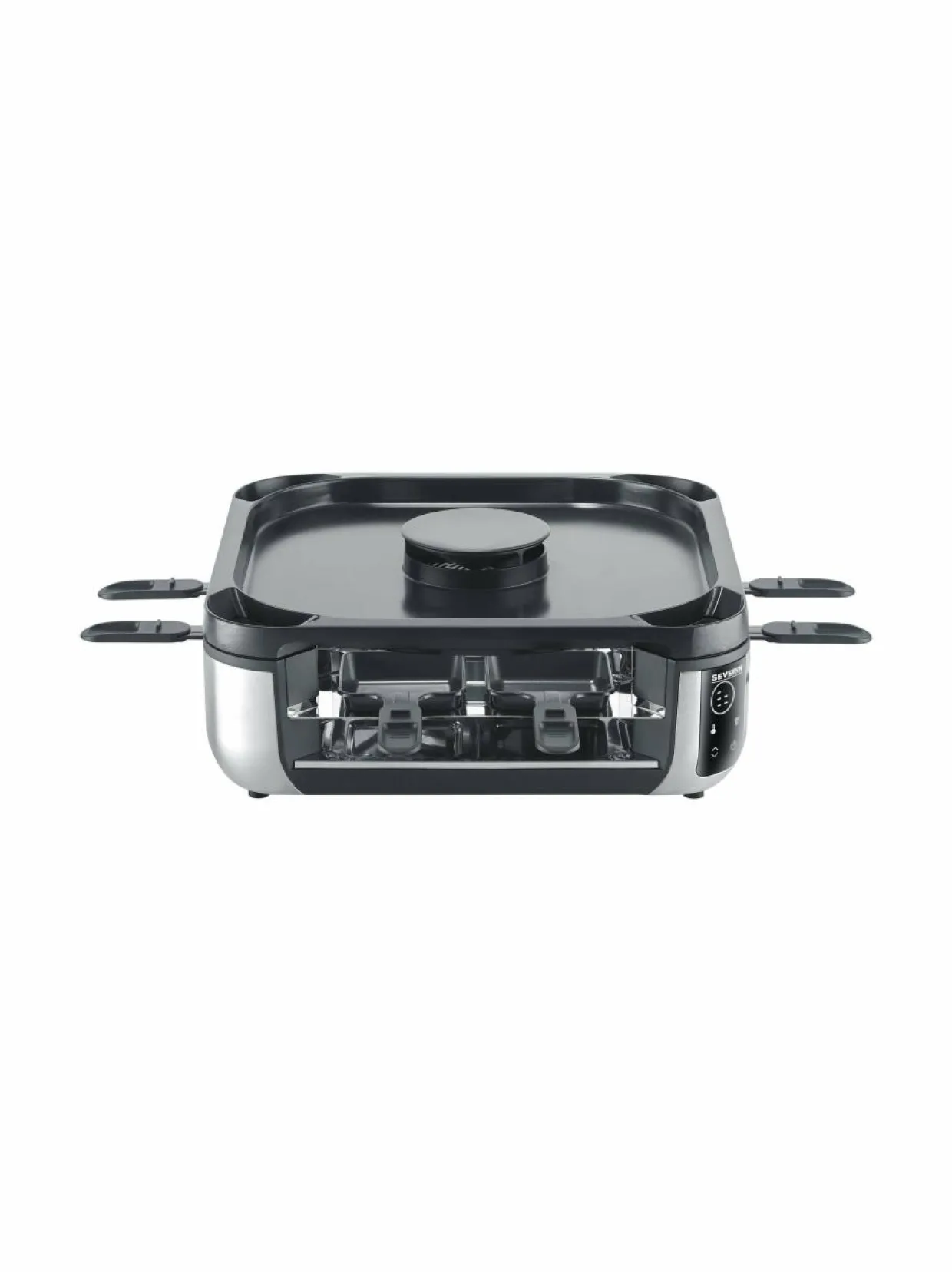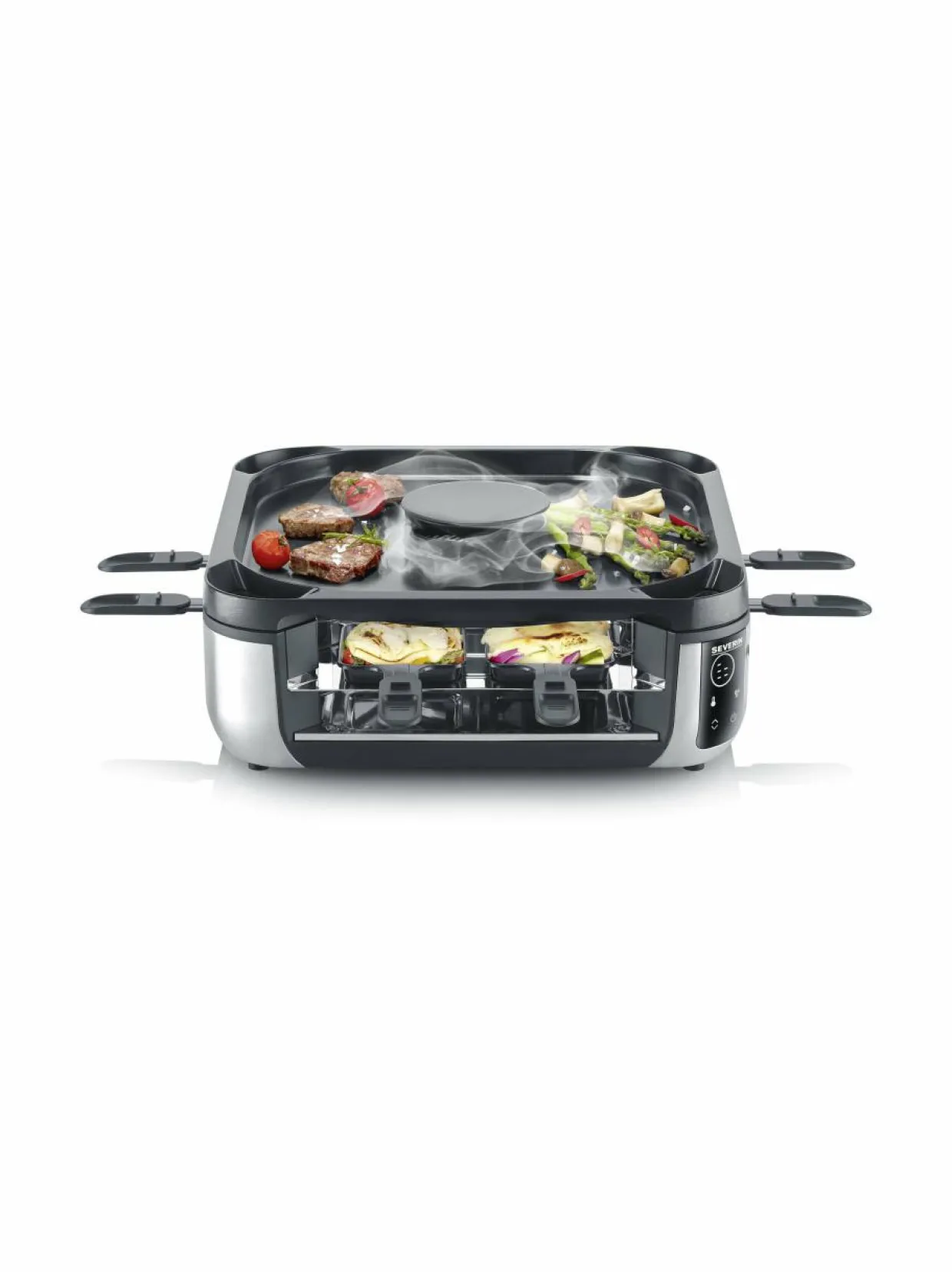 Markkinoiden ensimmäinen raclettegrilli, jossa on grillilevyyn integroitu kiertoilmasuodatin. Suodatuksen avulla huoneeseen ei tule käryä. Tehokas grillaus, jolla valmistat maittavia aterioita ystäviesi kanssa. Raclettegrillissä on digitaalinäyttö, jolla säädät kätevästi lämpötilaa sekä suodatusta. Paketissa toimitetaan mukana 8 raclette-lapiota.
