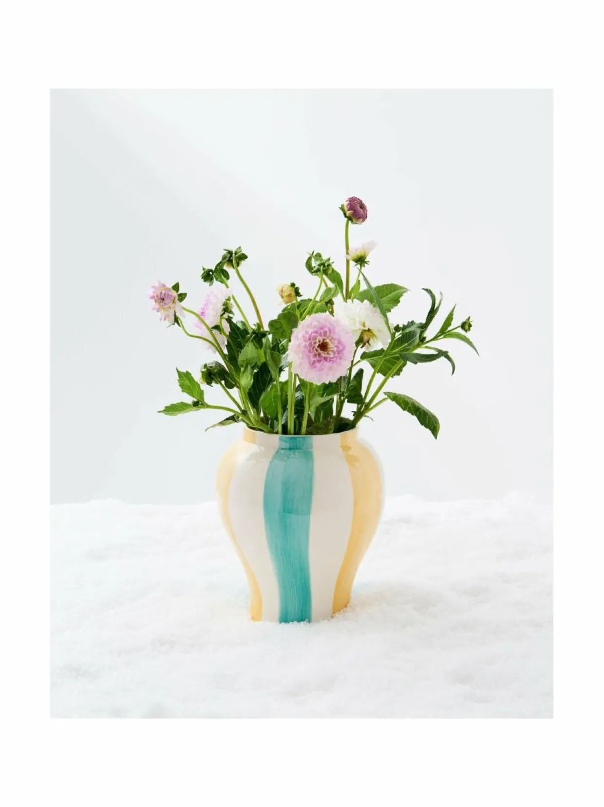 Sobremesa Stripe maljakko elegantilla, leikkisällä tyylillä. Koristeellinen, kaunis maljakko, joka tuo eloa huoneeseen. Maljakko on käsintehty kivitavarasta, jossa on värikäs raidallinen kuvio. Saatavana eri kokoisina ja malleina.