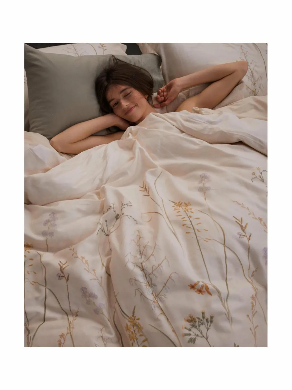 Vandyckin Soothing dreams -pussilakanasetti on valmistettu puuvillasatiinista, joka on kevyesti kiiltävä materiaali. Se ei useimmiten vaadi silitystä. Pussilakanasettiä koristavat hennot kukkakuviot. Sen levollinen sävy kutsuu rentoutumaan. Tyynyliinassa/tyynyliinoissa on litteät reunat. Settiin kuuluu pussilakana ja tyynyliina. Parisängyn pussilakanasetissä on kaksi tyynyliinaa.