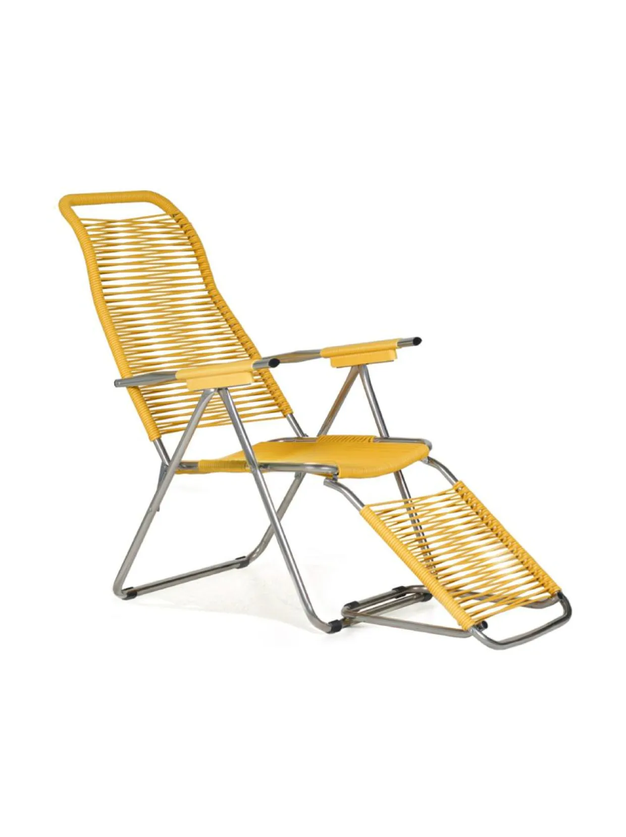 Korkealaatuisesta alumiinista valmistettu tuolin kehikko tekee siitä kestävän ja tukevan. PVC-materiaalista valmistettu spaghettimainen punos takaa maksimaalisen mukavuuden aurinkoisiin kesäpäiviin. Taittuvan rakenteensa ansiosta tuolia on helppo siirtää, varastoida tai vaikkapa ottaa rannalle mukaan.