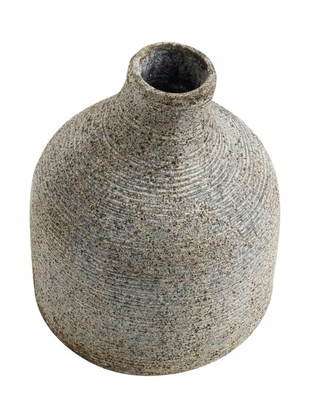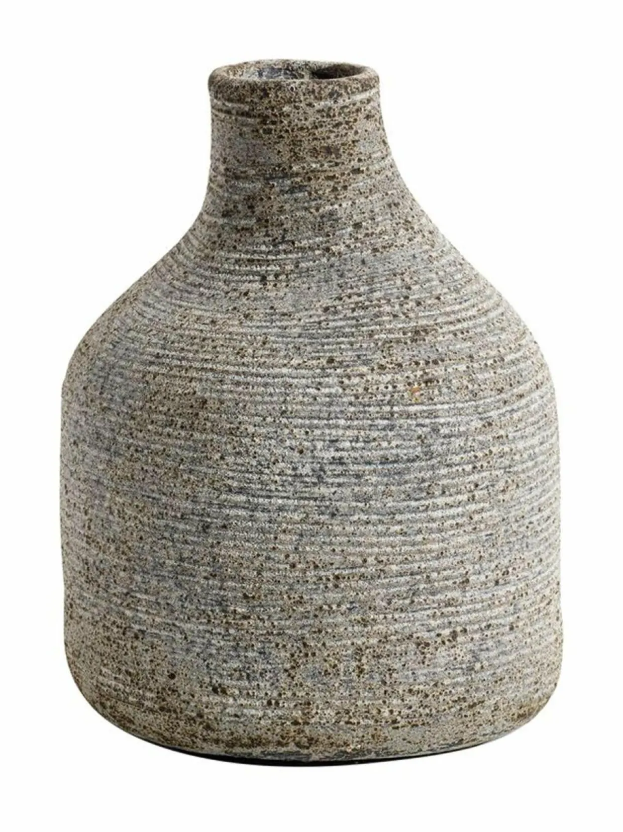 MUUBSin omaperäinen Stain S -terrakottamaljakko antaa persoonallisen silauksen kotisi sisustukseen. Maljakossa näkyy tekijän kädenjälki, ja pinnassa olevat raidat on saatu aikaan käyttämällä kampaa. Ylellinen muotoilu ja rauhallinen väritys antavat oikeutta niin pienille kukka-asetelmille kuin muutamalle villille puutarhaversollekin. Maljakko ei ole vesitiivis.