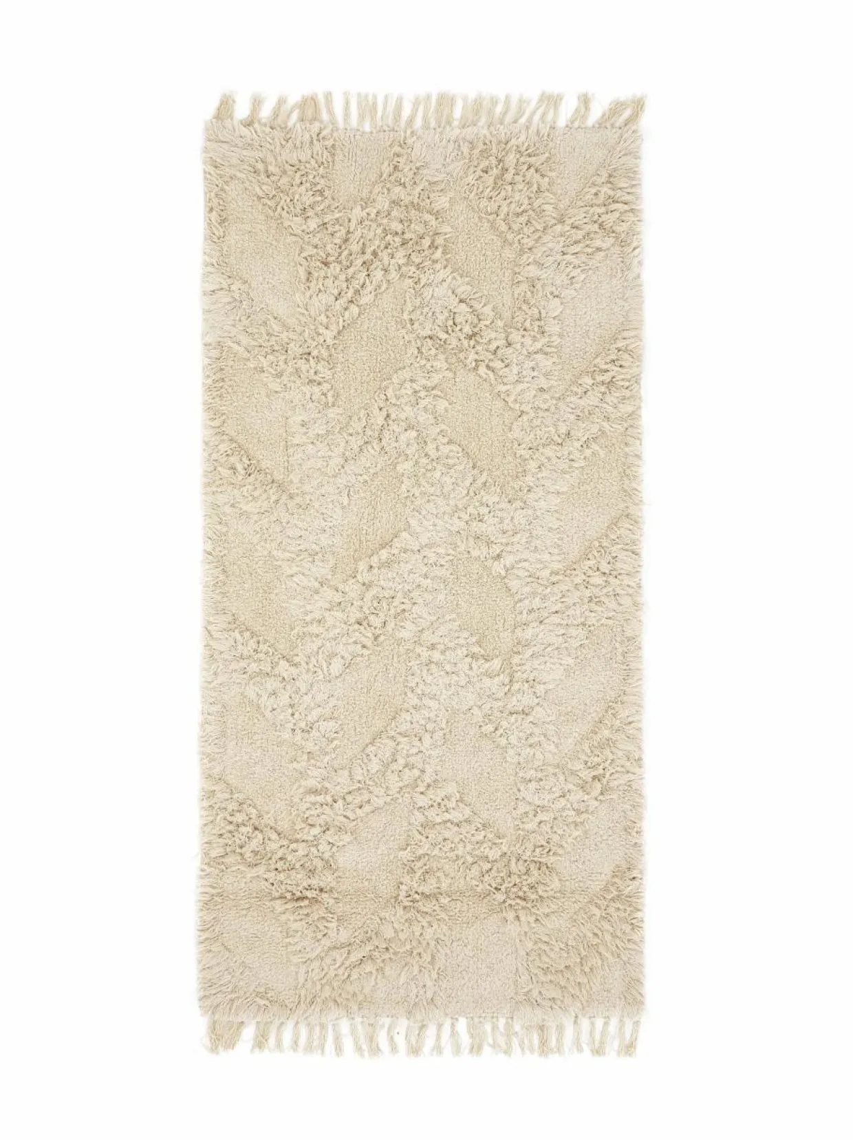 Pörröinen ja pehmeä matto, joka lämmittää jalkojasi. Valmistettu tuftatulla tekniikalla. Hapsutetut reunat luovat hienostuneen mutta leikkisän kosketuksen.
