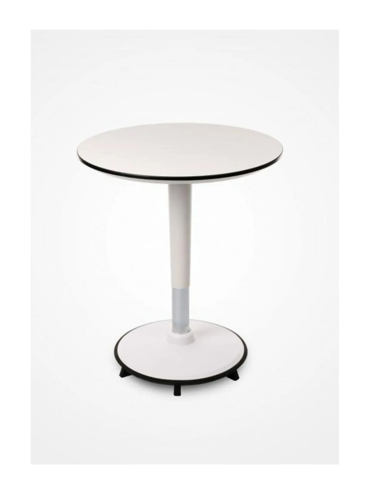 Stoo® Table on kaasujousella korkeussäädettävä kahvi-/neuvottelupöytä, joka sopii keittiöön, taukotilaan, aulatiloihin tai pieniin neuvotteluhuoneisiin. Korkeutta voi säätää pyöreästä, pöytälevyn alla olevasta korkeussäätölaipasta.