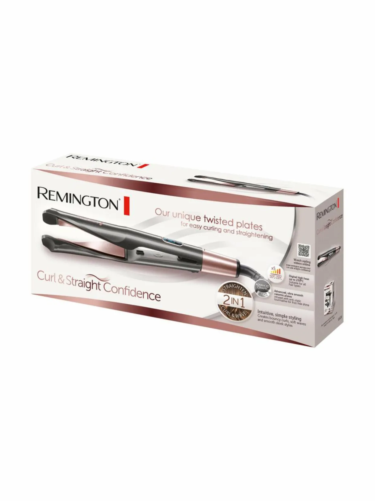Remington Curl & Straight Confidence -muotoiluraudan ansiosta voit näyttää upealta helpommin kuin koskaan. Digitaalinen lämpötilan säätö (5 lämpötilaa 150 °C – 230 °C) tarjoaa mahdollisuuden valita juuri sinun hiuksillesi optimaalisen muotoilulämpötilan. Keraamiset levyt, joissa on antistaattista turmaliinia, takaavat sen, että muotoilurauta liukuu hiuksissa vaivattomasti ja tuloksena on upeat, sileät ja kiiltävät hiukset.
