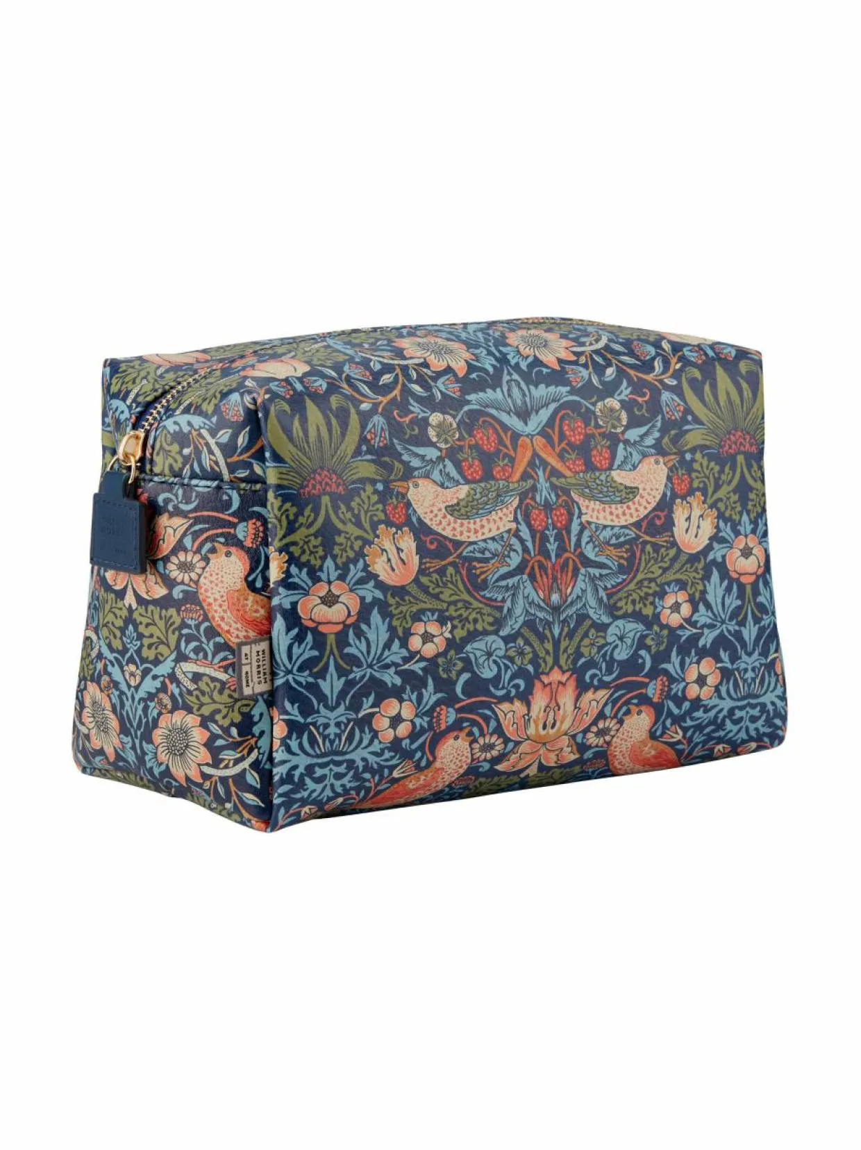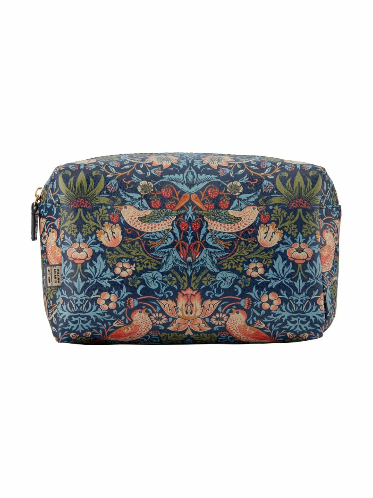 William Morris At Home Strawberry Thief Large -kosmetiikkalaukkua koristaa vuonna 1883 William Morriksen suunnittelema printti. Se on saanut inspiraationsa rastaista, jotka olivat hiipineet hänen mansikkaverkkojensa alle hänen puutarhassaan Kelmscott Manorissa Oxfordshiressa. Meikkilaukku tuo perinteistä englantilaista tunnelmaa kylpyhuoneeseesi.