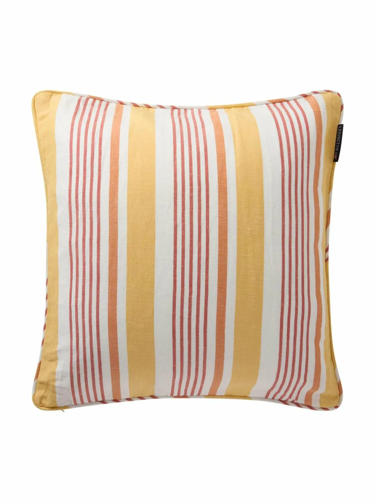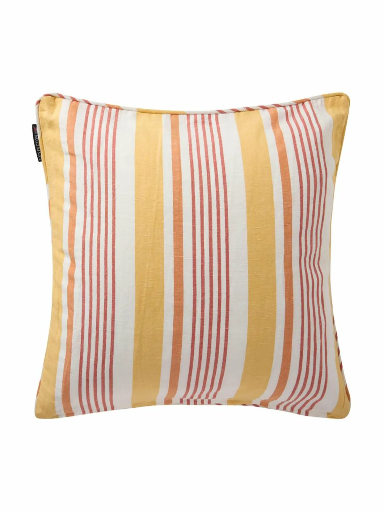 Klassinen raidallinen tyynynpäällinen Lexingtonilta. Sen ympärillä on tereet. Sävyyn sopiva vetoketju on sijoitettu tyynynpäällisen alareunaan. Materiaalina pehmeä pellava-puuvilla. Koko: 50 x 50 cm.