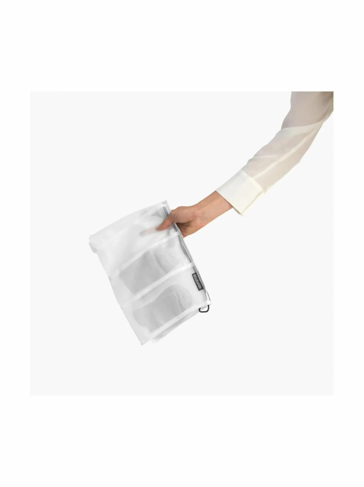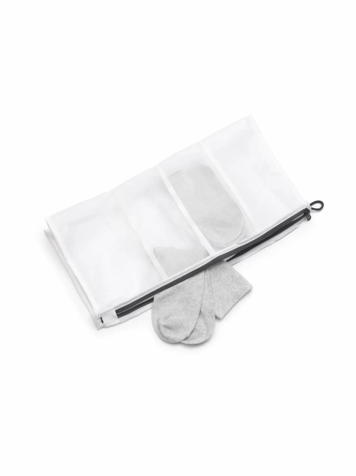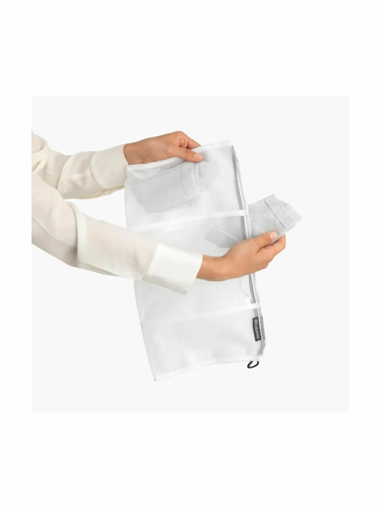 Ei enää kadonneita sukkia! Brabantian sukkien pesupussi pitää sukat tallessa. Se on verkkopussi, joka pitää jopa 4 paria sukkia yhdessä pesun, huuhtelun tai linkouksen aikana. Vesi virtaa suoraan läpi. 4 suureen lokeroon mahtuu myös isompia sukkia. Helppo sulkea vetoketjulla. Valmistettu korkealaatuisista materiaaleista, jotka takaavat kestävyyden. 100 % kierrätettävä käytön jälkeen.