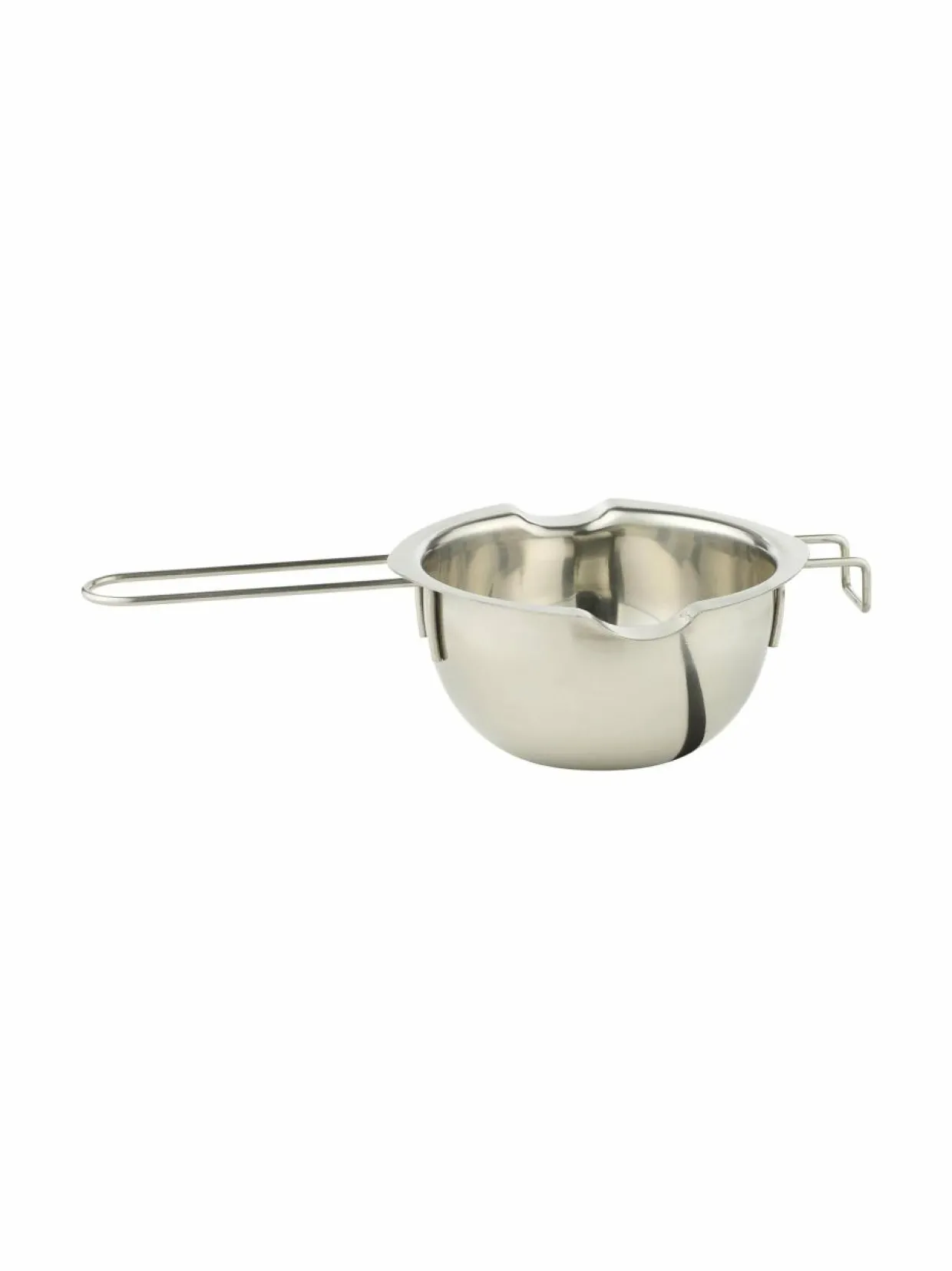 Sulatuspannu on valmistettu ruostumattomasta teräksestä. Etukoukku liukastumisen estämiseksi, kaksinkertainen nokka molemmilla puolilla sekä tasainen pohja.