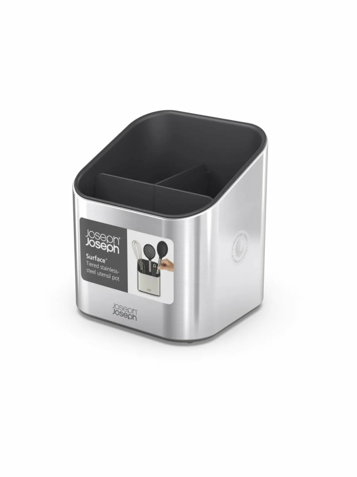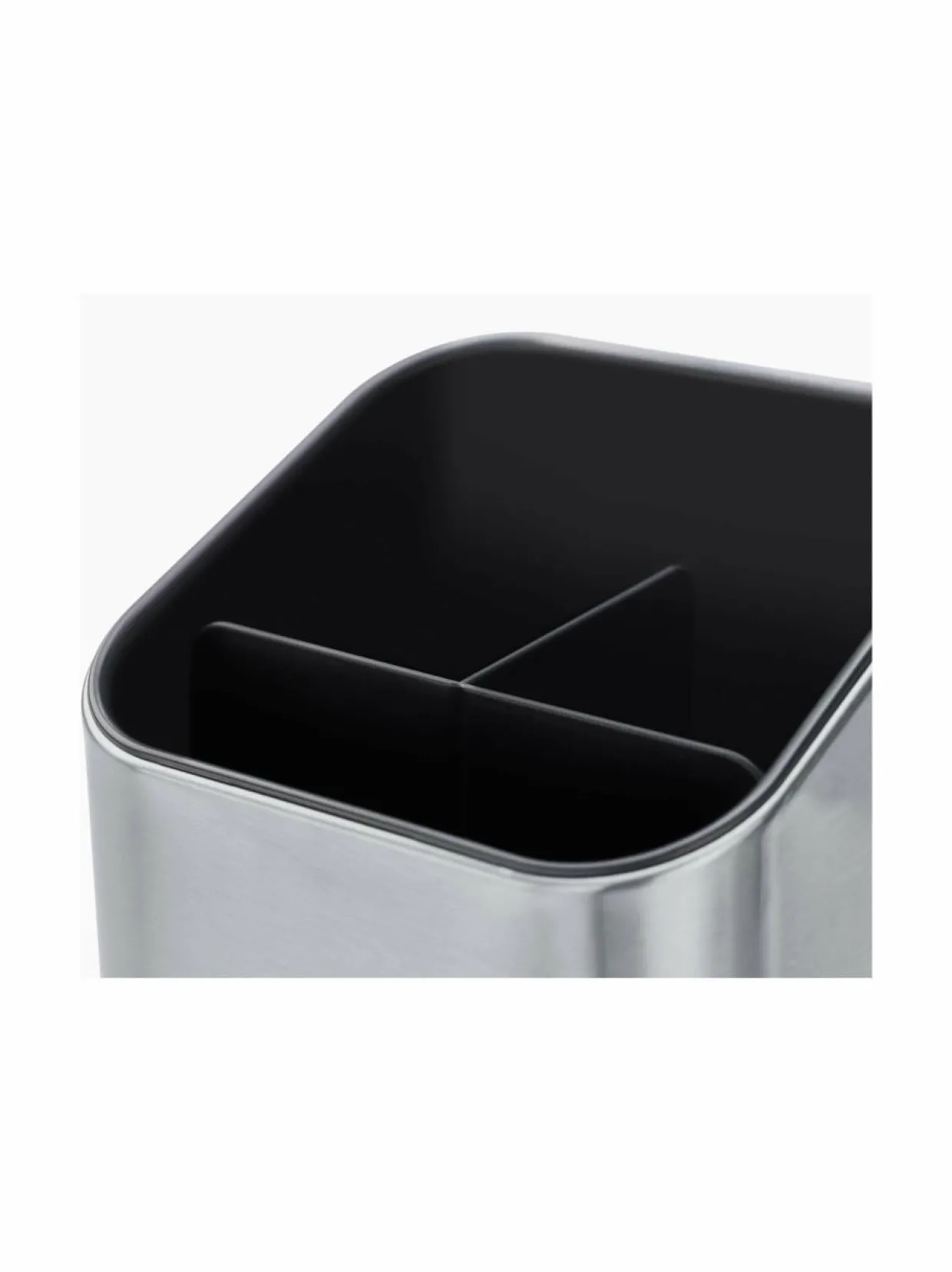 Kovasta ruostumattomasta teräksestä valmistettu teline aterinten kuivatukseen ja säilytykseen. Tilanjakaja pitää aterimet juuri haluamassasi järjestyksessä. Teräksen pintaan ei jää sormenjälkiä. Pohjassa on liukumista estävät jalat. Helppo purkaa puhdistamista varten.
