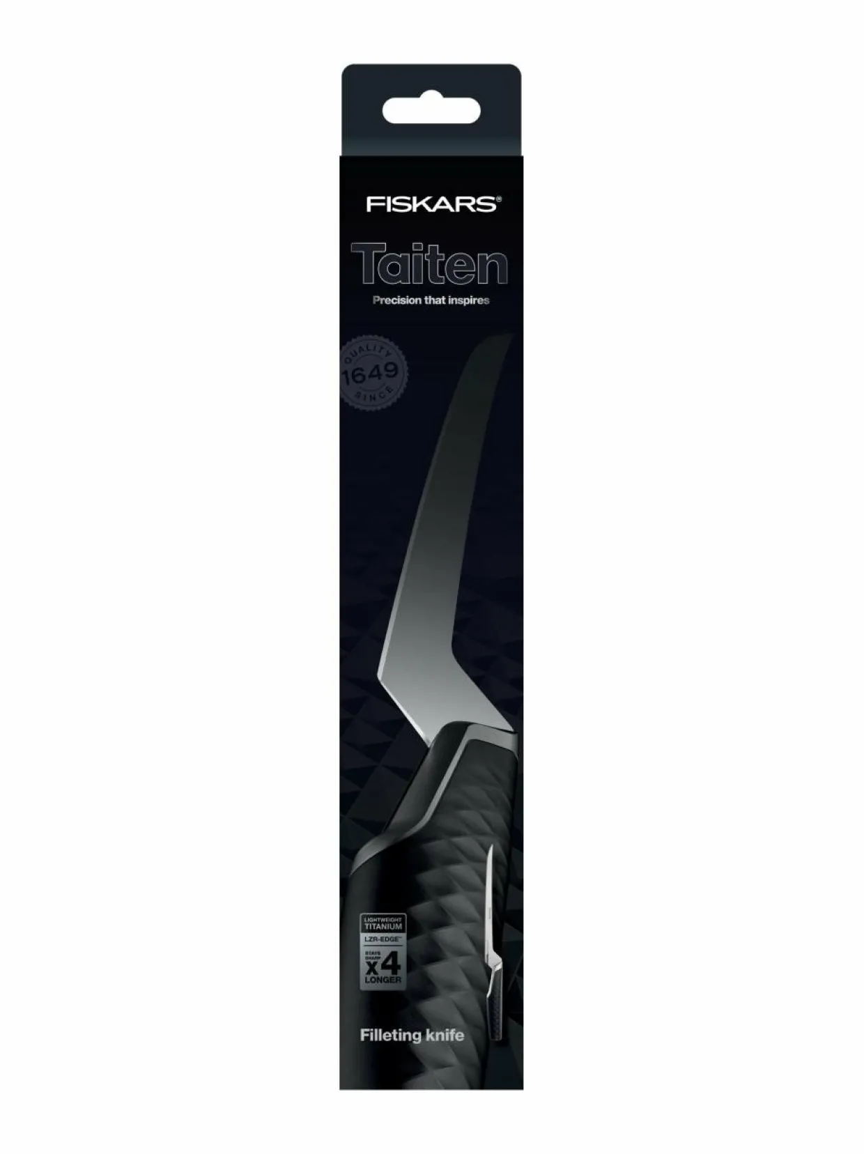 Taiten-fileointiveitsessä on kevyt titaaniterä, joka nopeuttaa työskentelyä ja lisää tarkkuutta. Sen suunnittelussa on hyödynnetty LZR-EDGE™-teknologiaa, joka takaa erinomaisen leikkuutehon jopa neljä kertaa perinteisiä veitsiä pidempään. Korroosionkestävyytensä ansiosta titaani ei ruostu helposti, joten tuote on erittäin pitkäikäinen. Valmistaja tarjoaa tuotteelle 25 vuoden takuun.