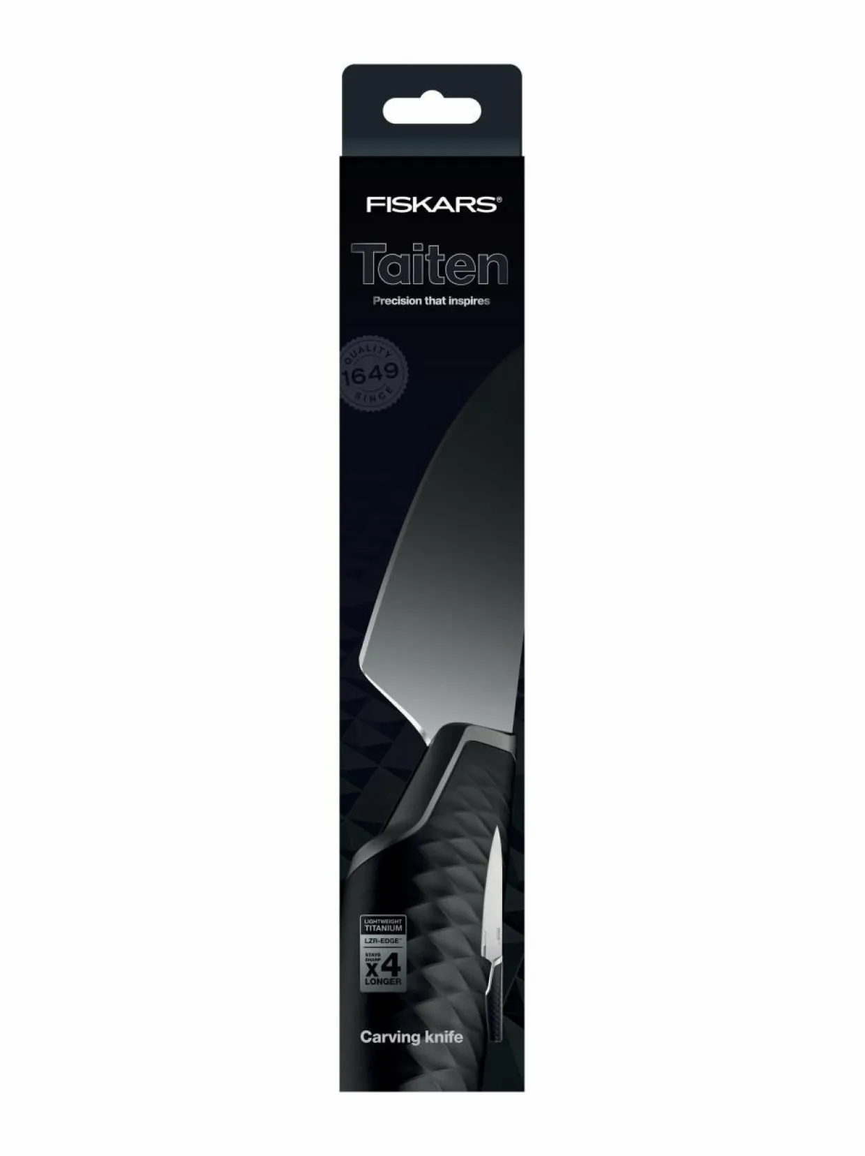 Taiten-paistiveitsessä 21 cm on kevyt titaaniterä, joka nopeuttaa työskentelyä, lisää tarkkuutta ja tekee veitsen käsittelystä mukavaa. Sen suunnittelussa on hyödynnetty LZR-EDGE™-teknologiaa, joka takaa erinomaisen leikkuutehon jopa neljä kertaa perinteisiä veitsiä pidempään. Korroosionkestävyytensä ansiosta titaani ei ruostu helposti, joten tuote on erittäin pitkäikäinen.Valmistaja tarjoaa tuotteelle 25 vuoden takuun.