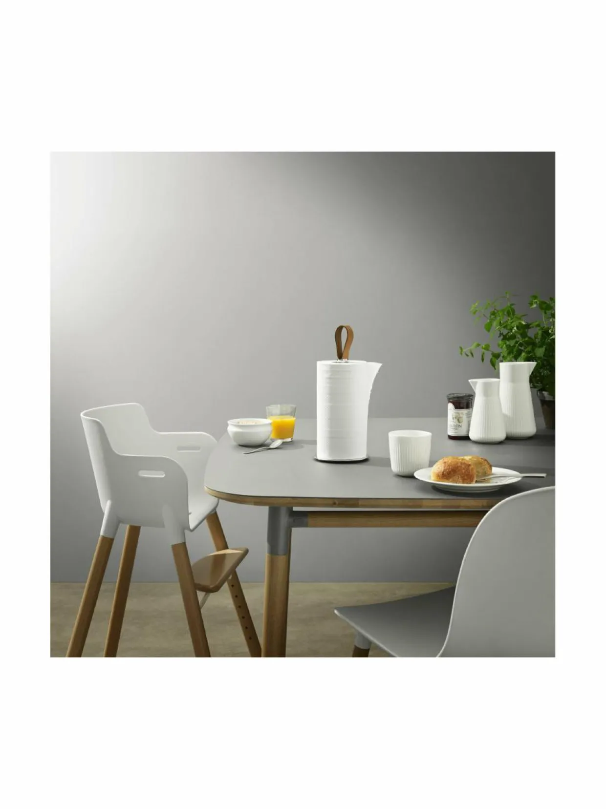 Elegantissa talouspaperitelineessä on nahkainen lenkki ja kumipinnoitettu pohja, joten teline pysyy vakaasti paikallaan eikä liu’u keittiönpöydällä.