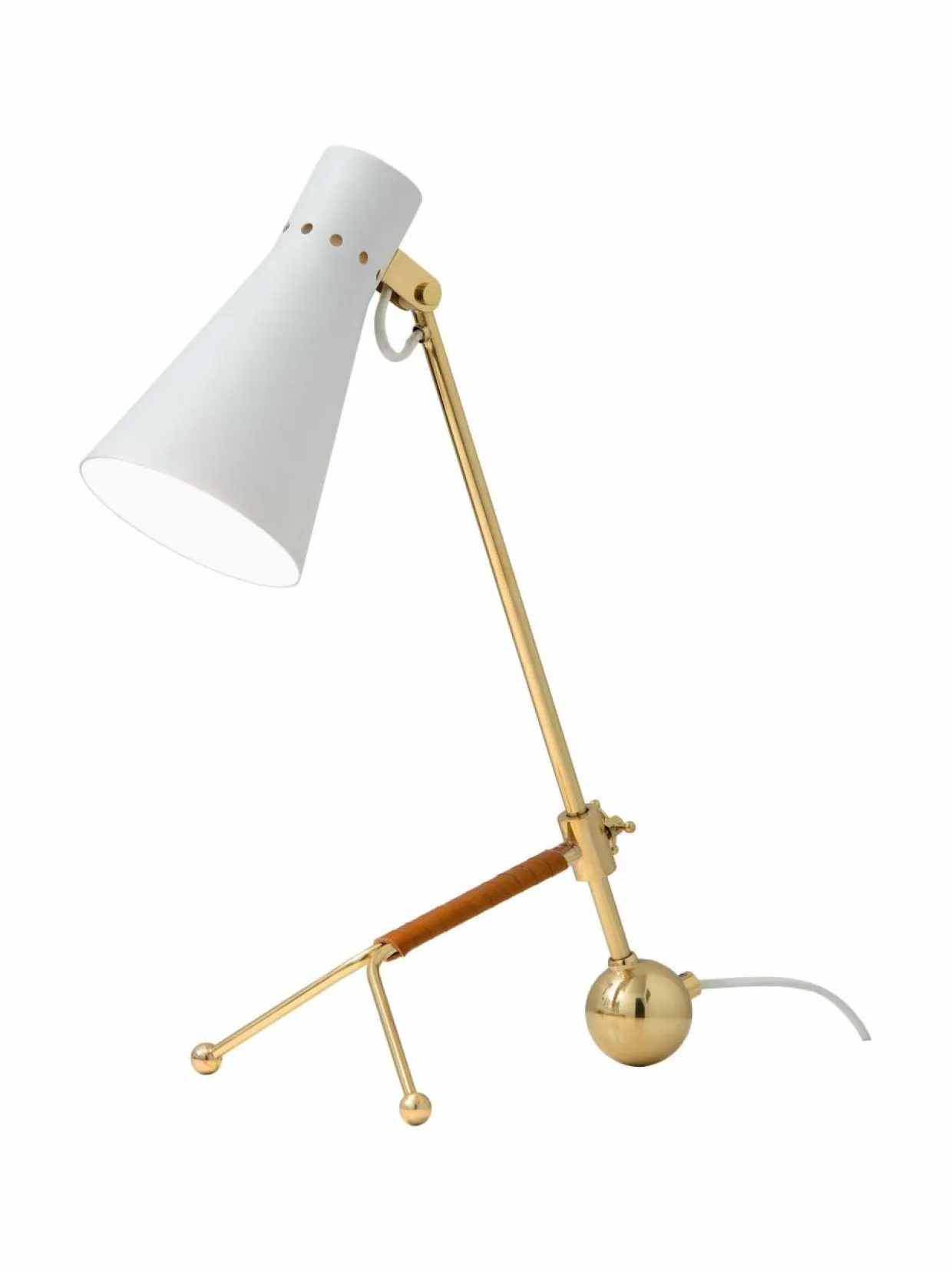 Tapio Wirkkalan ajattoman tyylikkäässä pöytävalaisimessa yhdistyvät herkkä keveys, geo metriset muodot ja laadukas viimeistely. Klassinen kokonaisuus rakentuu harkittujen osien tasapainoisesta yhdistelmästä. Valaisimen ilmeikkään hahmomainen olemus on yhtä aikaa klassinen ja yllättävä. Tapio-pöytävalaisimen molempien väriversioiden, valkoisen sekä mustan graafisuuden viimeistelee käsityönä syntyvä, valkokupuisessa konjakinsävyinen ja mustakupuisessa ruskea nahkapunonta, sekä elegantit, messinkiset yksityiskohdat. Pienikokoinen valaisin on sekä laadukas desingesine että käytännöllisyydessään verraton valinta kotiin tai konttorille – joka on tarpeen vaatiessa helppo sijoittaa aina uudelleen.